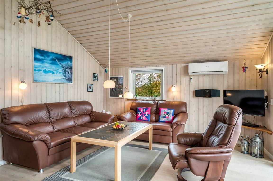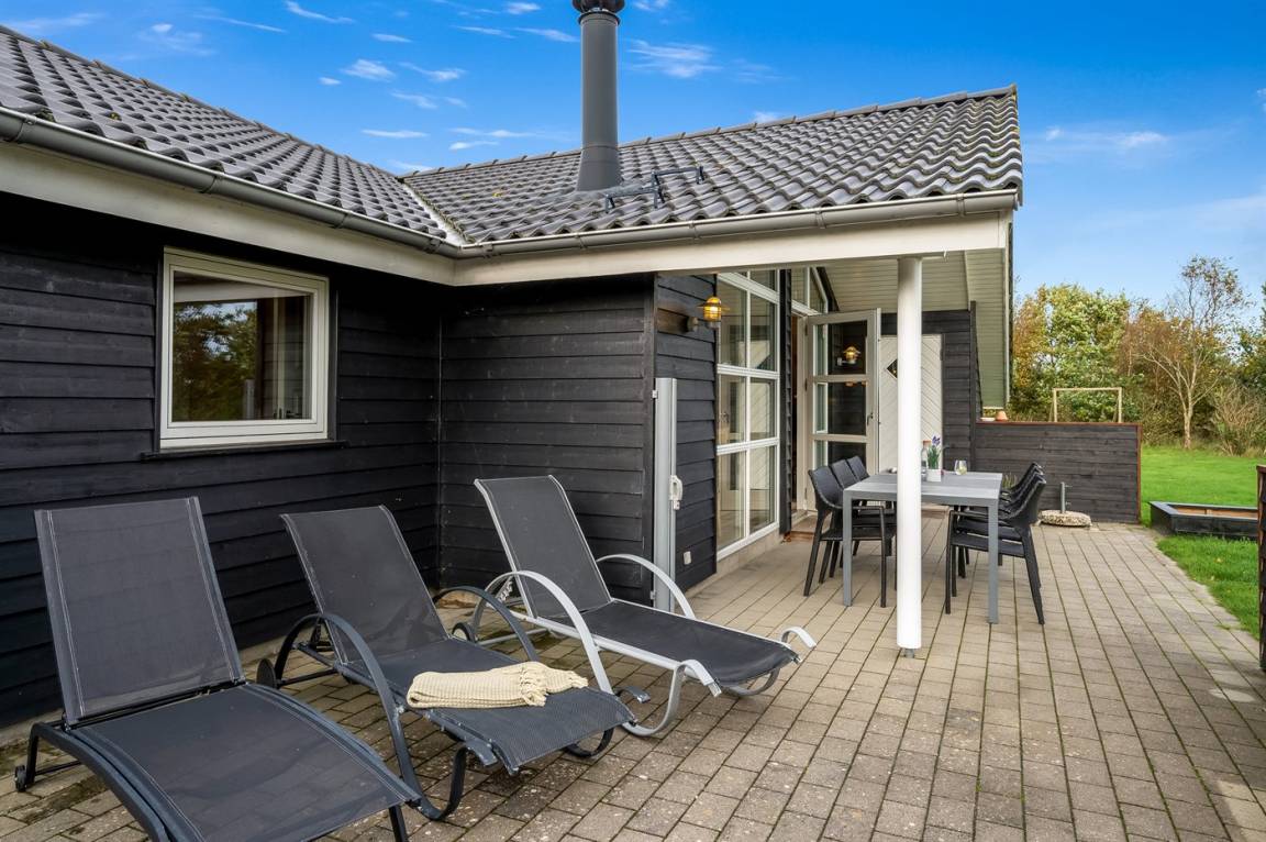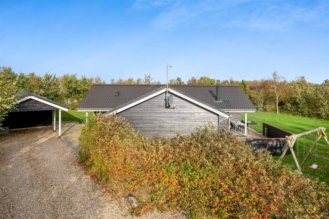 DraußenDie Ferienunterkunft liegt auf einem 1320 m² großen Naturgrundstück. Die Entfernung zum Fjord beträgt 800 m. Die nächste Einkaufsmöglichkeit liegt 700 m entfernt. Es steht ein offenes Terrassenareal zur Verfügung. Außerdem gibt es überdachte Terrasse. Schaukel. Sandkasten. Es steht ein Carport zur Verfügung. Parkplatz auf dem Grundstück.