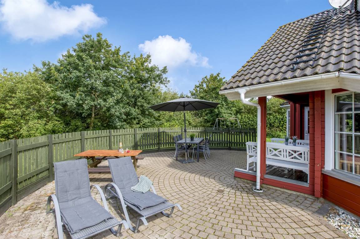 Tolles Ferienhaus mit großer Westterrasse. Das Haus hat zudem eine Ostterrasse, auf der Sie Ihren Morgenkaffee genießen können. Das Ferienhaus verfügt über ein großes Grundstück mit Schaukel für Kinder. Nicht weit entfernt befindet sich ein Spielplatz. Etwa 10 m² des Grundstücks sind eingezäunt.