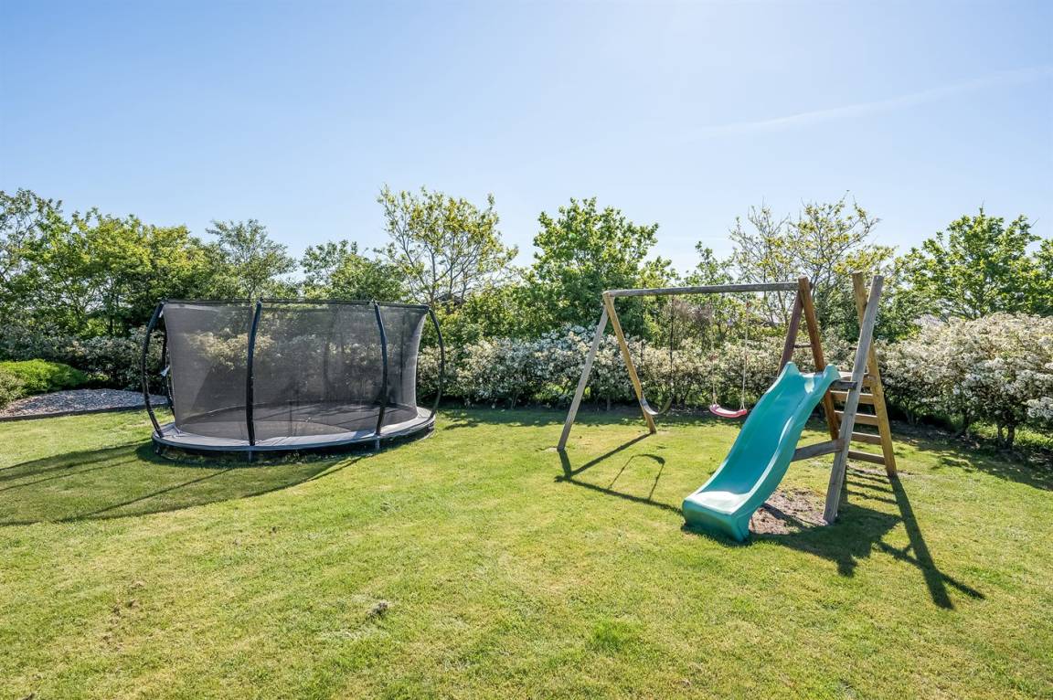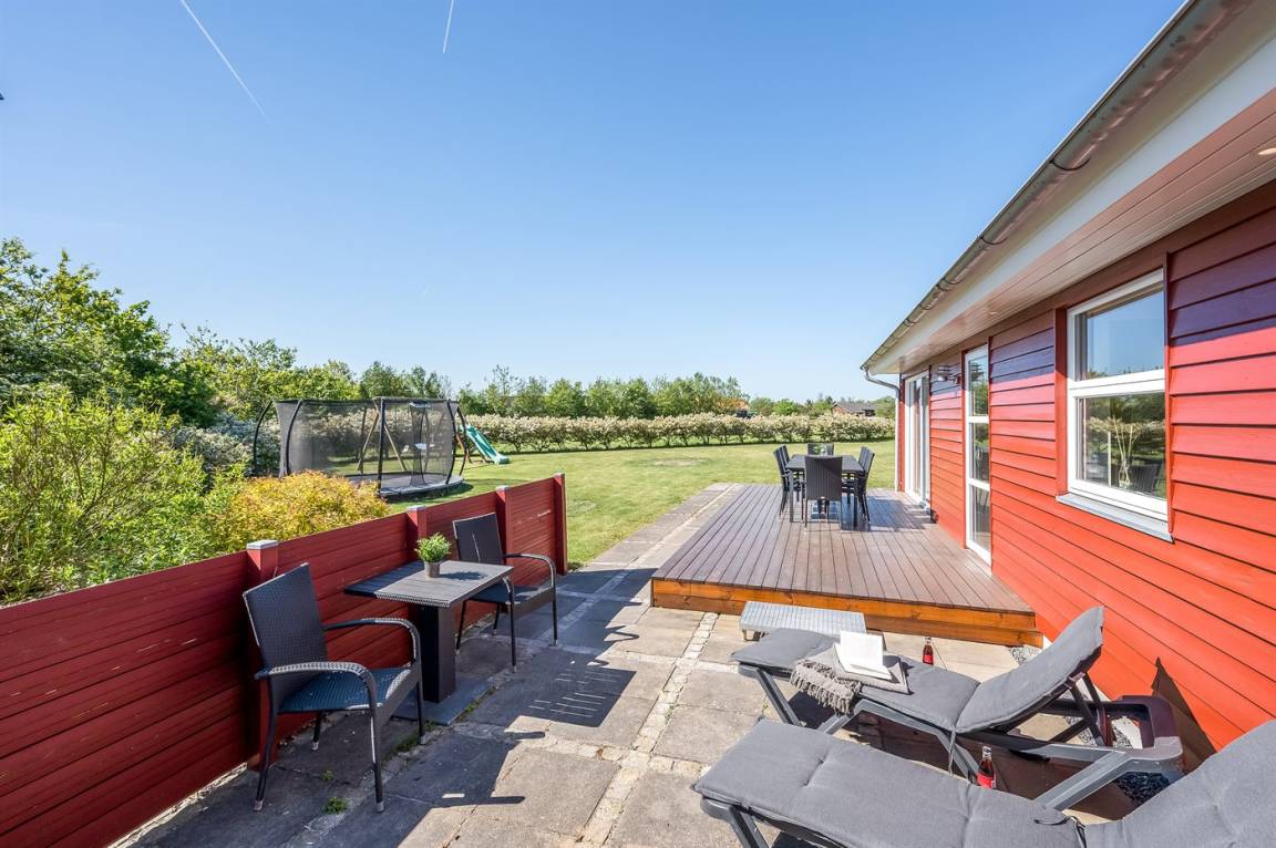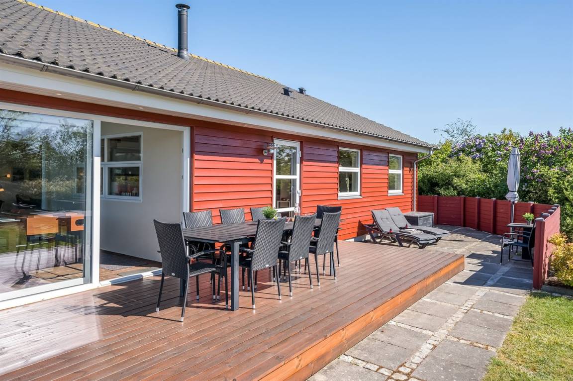 DraußenDie Ferienunterkunft liegt auf einem 1280 m² großen Naturgrundstück. Die Entfernung zum Meer beträgt 12000 m. Die Entfernung zum Fjord beträgt 800 m. Die nächste Einkaufsmöglichkeit liegt 700 m entfernt. Es steht ein 90 m² Terrassenareal zur Verfügung. Schaukel. Trampolin. Rutsche. Es steht ein Carport zur Verfügung. Es ist ein Ladestecker für Elektroautos installiert. Mit einer Ladeleistung von 11 kW. Parkplatz auf dem Grundstück.