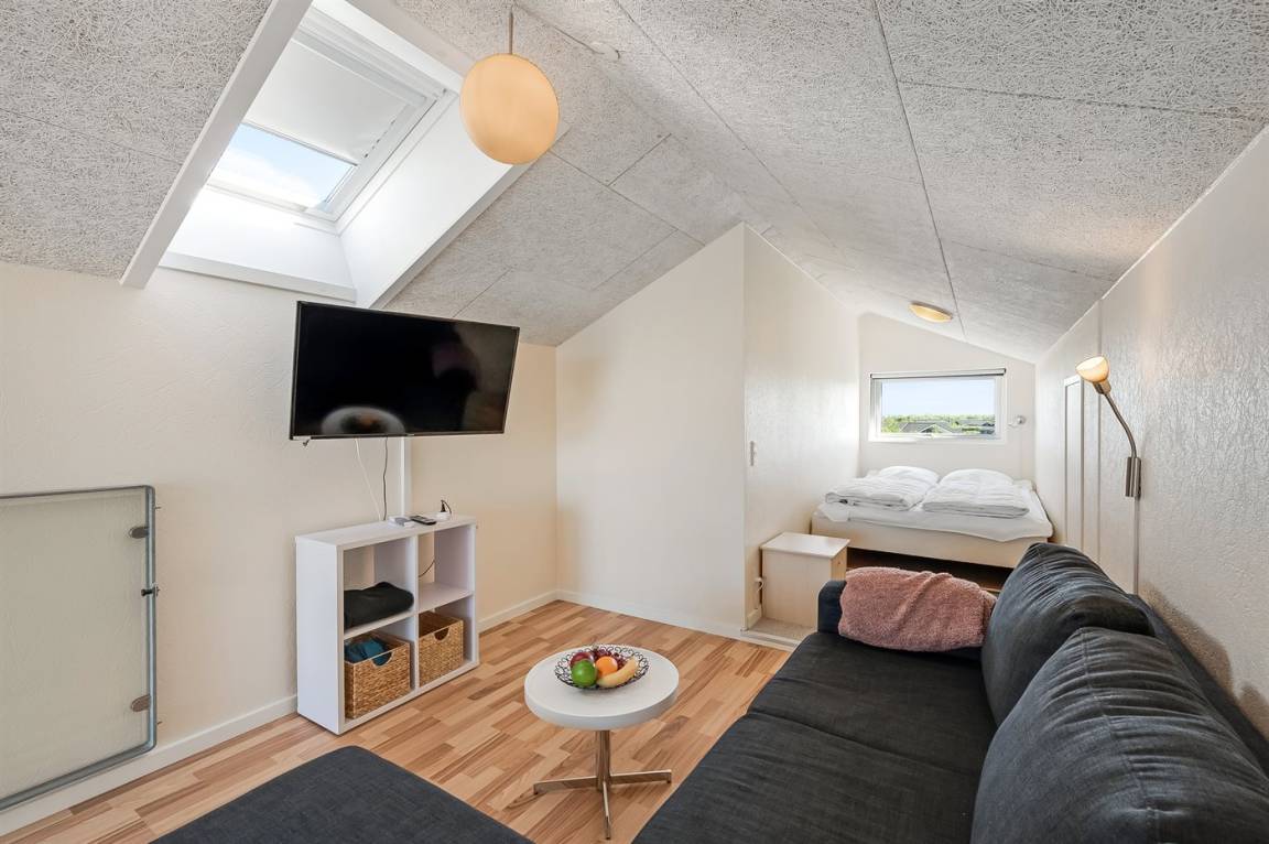 Dieses besonders schöne Ferienhaus liegt auf einem Naturgrundstück in ruhiger Umgebung – nur wenige hundert Meter von einem kleinen, gemütlichen Yachthafen sowie ein guter Spielplatz entfernt. Im hellen offenen Obergeschoss, das mit 2 Schlafplätzen, Couch und TV eingerichtet ist können es sich Kinder und Jugendliche so richtig gemütlich machen.