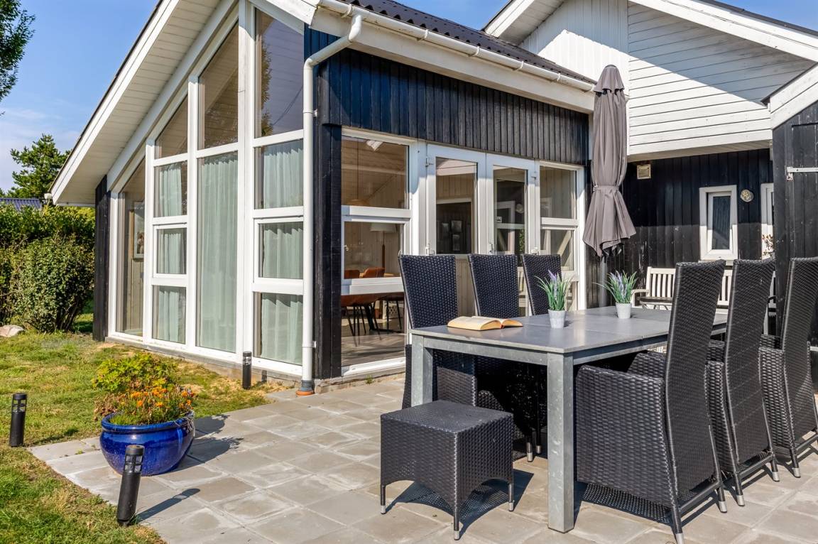 DraußenDie Ferienunterkunft liegt auf einem 845 m² großen Naturgrundstück. Das Grundstück ist eingezäunt. Die Entfernung zum Meer beträgt 13000 m. Die Entfernung zum Fjord beträgt 350 m. Die nächste Einkaufsmöglichkeit liegt 700 m entfernt. Es steht ein offenes Terrassenareal zur Verfügung. Zutritt zu einem Wintergarten. Die Entfernung zu einem Spielplatz beträgt 500 m. Es ist ein Ladestecker für Elektroautos installiert. Parkplatz auf dem Grundstück.