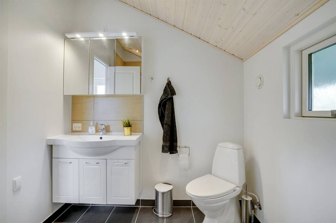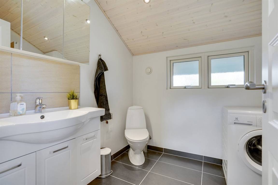 DraußenDie Ferienunterkunft liegt auf einem 1000 m² großen Naturgrundstück. Die Entfernung zum Meer beträgt 30000 m. Die Entfernung zum Fjord beträgt 300 m. Die nächste Einkaufsmöglichkeit liegt 100 m entfernt. Es steht ein 30 m² Terrassenareal zur Verfügung. Geräteraum. Parkplatz auf dem Grundstück.