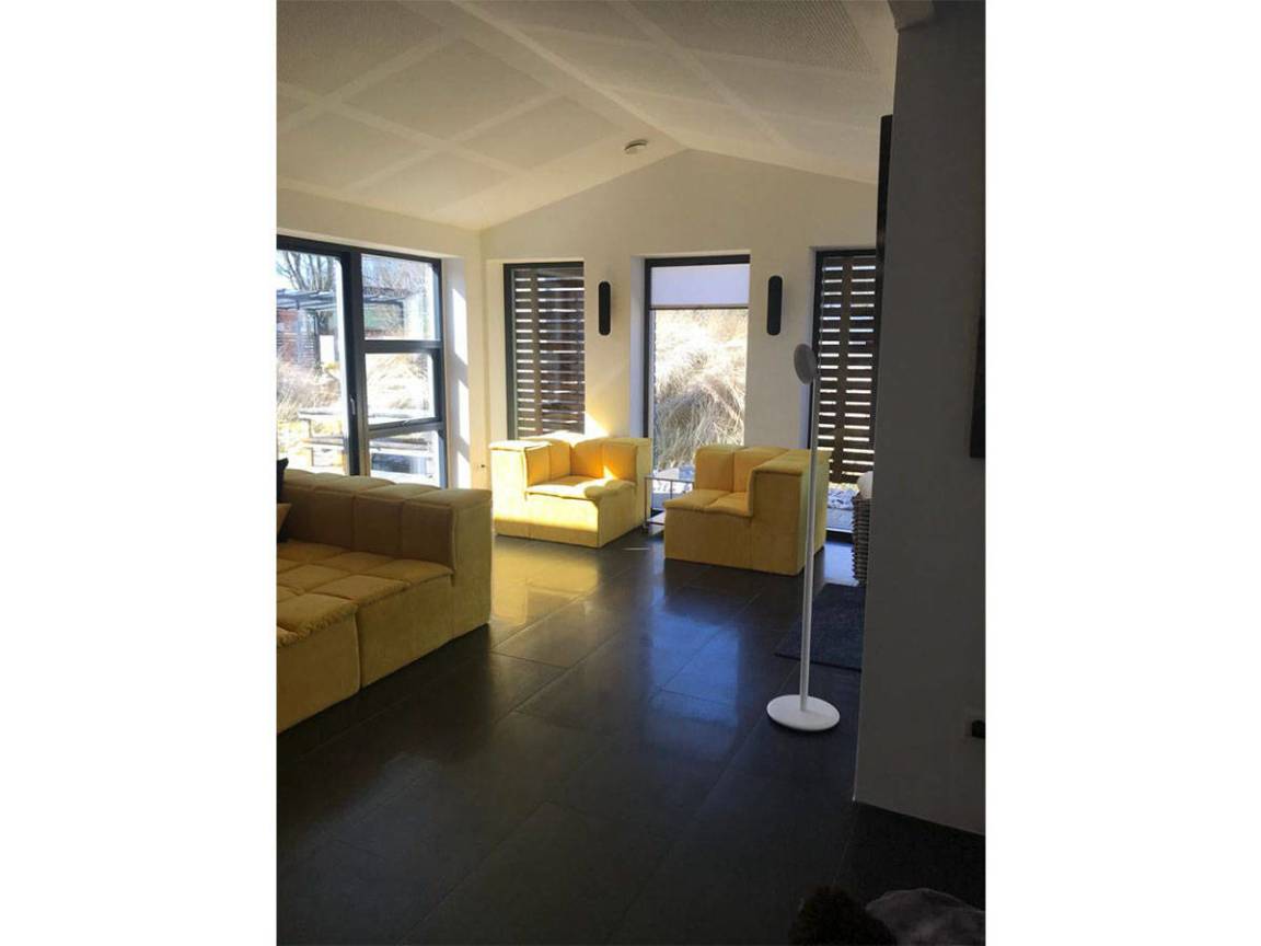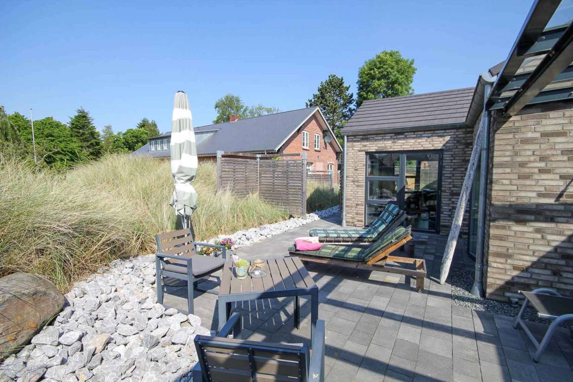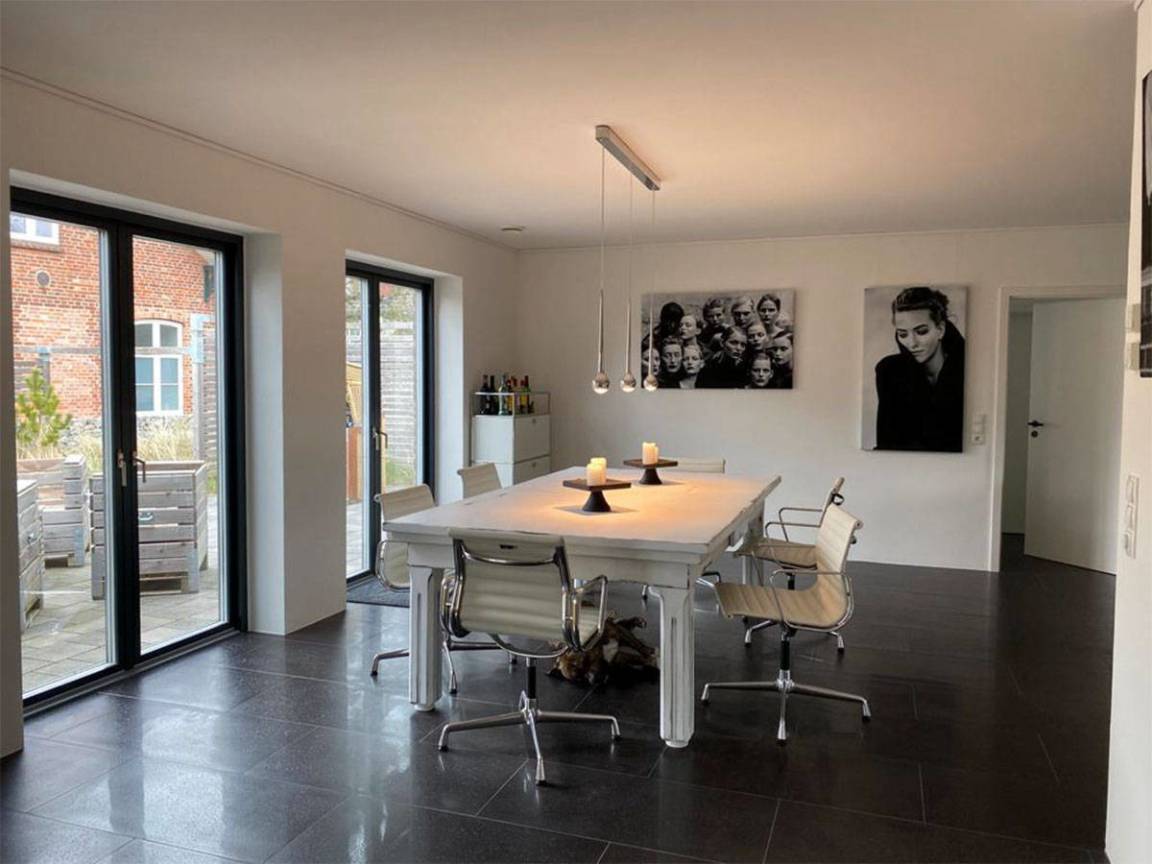 Ein Neubau im skandinavischen Stil auf einer Ebene – mitten in Tating-Dorf, dazu eine Sand-Düne mit Strandhafer – diese Kombination aus dänischem Charme und modernem Design, macht das Objekt einfach nur HYGGE.