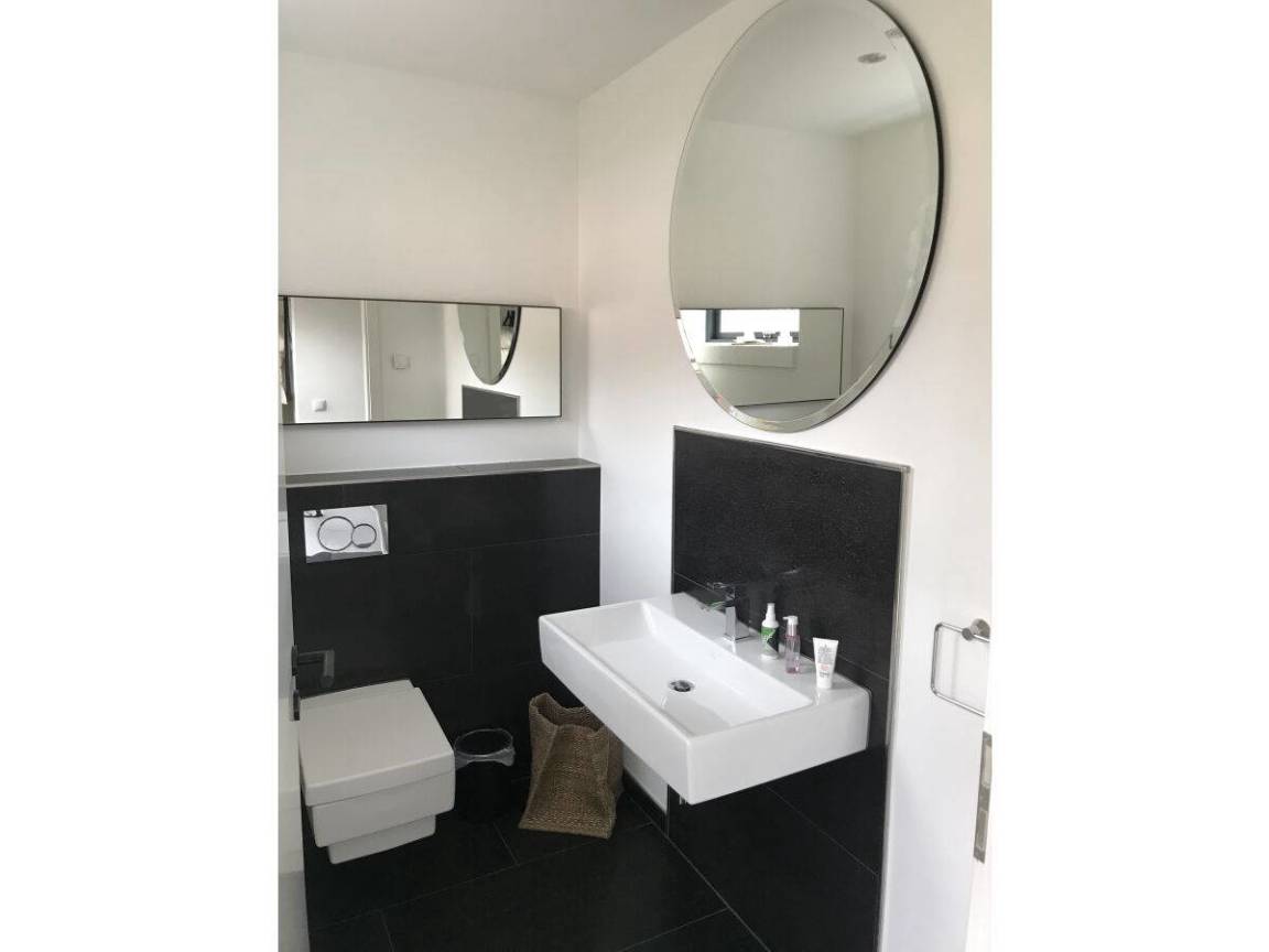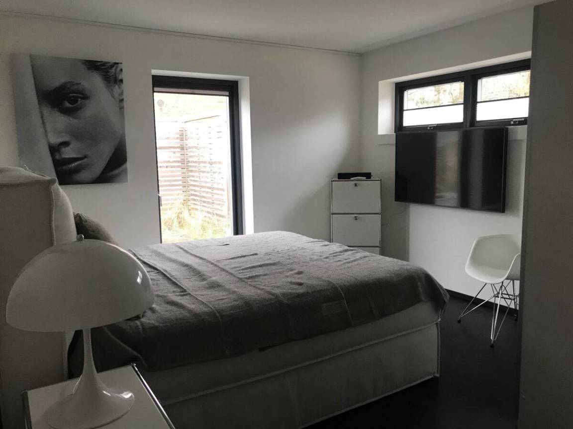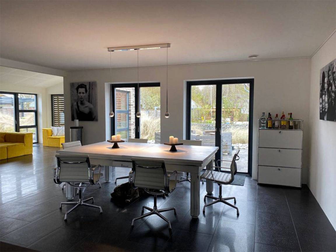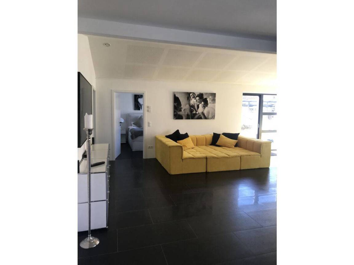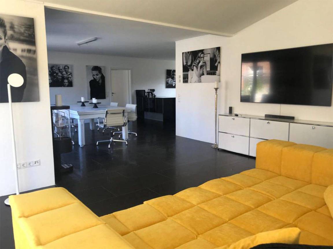 Schwarze Fußböden mit Fussboden-Heizung, im Kontrast zu weißen glatten Wänden – das ist die HOOK-LINE. Eine Luxus-Küche vom Feinsten, Bäder zum Niederknien, 4 Doppel-Schlafzimmer, ein Esstisch mit Eames-Stühlen, an dem man auch Billard spielen kann, dazu ein XXL-Big-Sofa, massieren die Sinne, wie die BASS-LINE in Ihrem Lieblingssong.