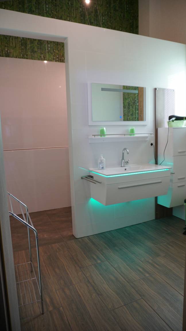 Diese Ferienwohnung hat einen barrierefreien Zugang. Im gesamten Erdgeschoss setzt sich die Barrierefreiheit fort: 1 Schlafzimmer mit großem Doppelboxspringbett, 1 Badezimmer mit großer barrierefreier Dusche und WC, 1 Gäste WC, moderne vollständig eingerichtete Küche mit Essbereich, Wohnlandschaft mit zusätzlicher Bettfunktion.