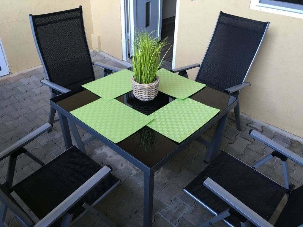 Diese Wohnung hat eine eigene Terrasse mit Tisch und Sitzgelegenheiten.