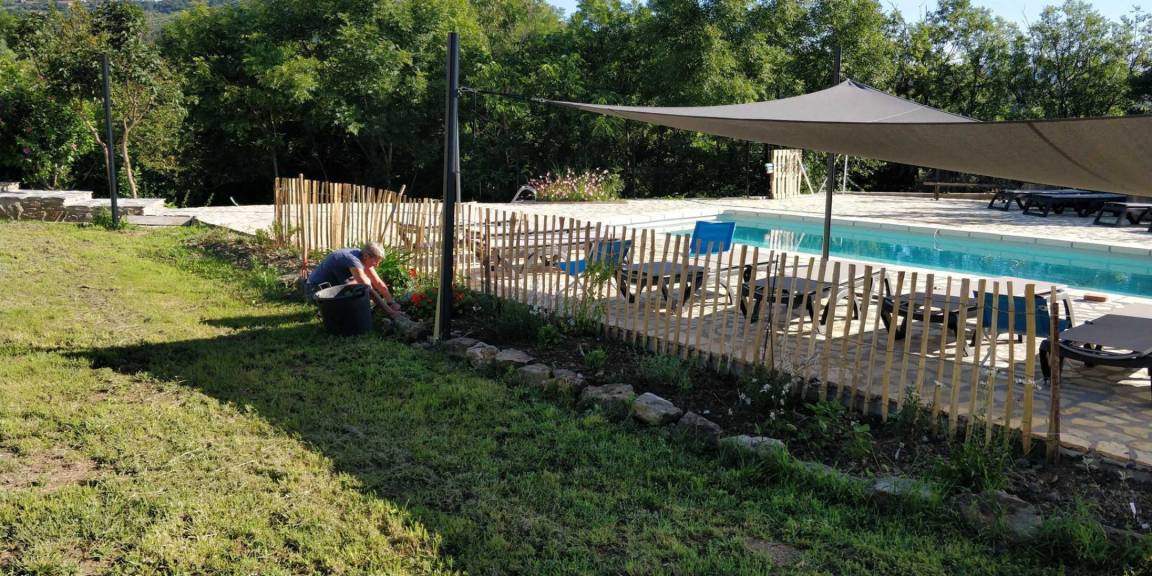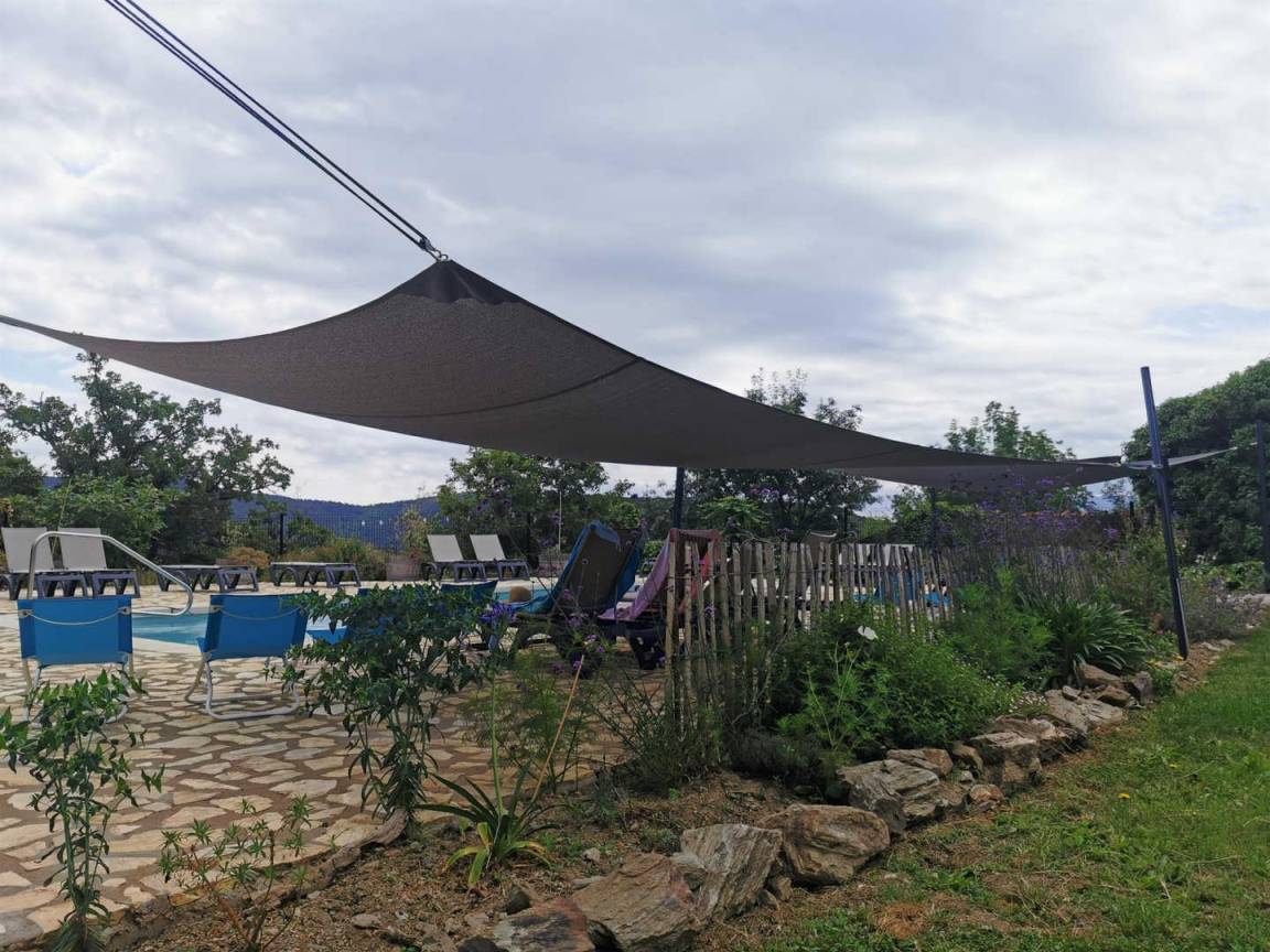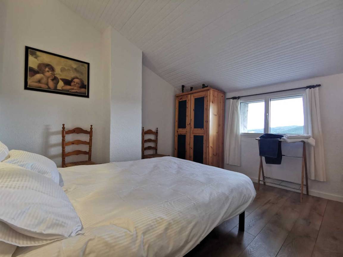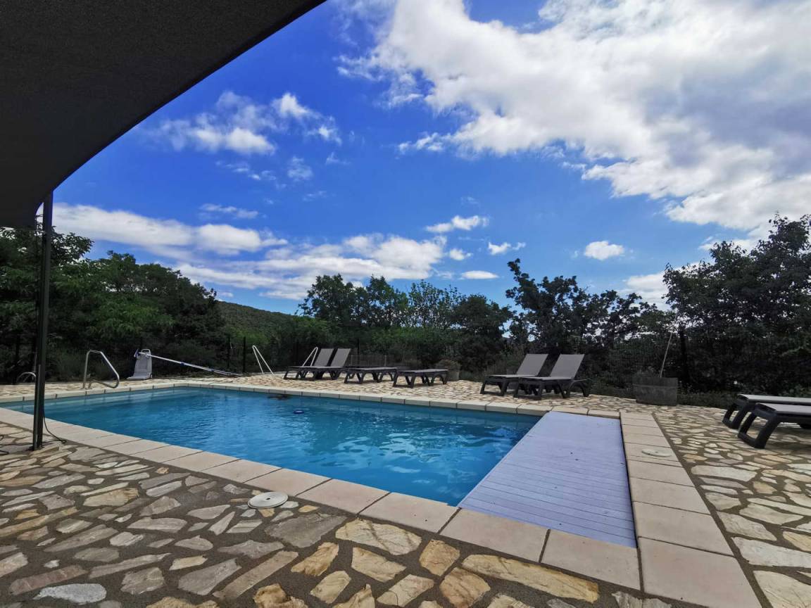 Nur wenige Meter entfernt bietet der Gemeinschaftspool (für vier Unterkünfte) einen atemberaubenden Blick ins Tal. Angrenzend befindet sich eine 150 m² große Terrasse mit Liegestühlen. Der Pool (10 x 4 m, 1,40 m tief), der mit zwei weiteren Ferienhäusern geteilt wird, ist beheizt und von Juni bis September geöffnet.