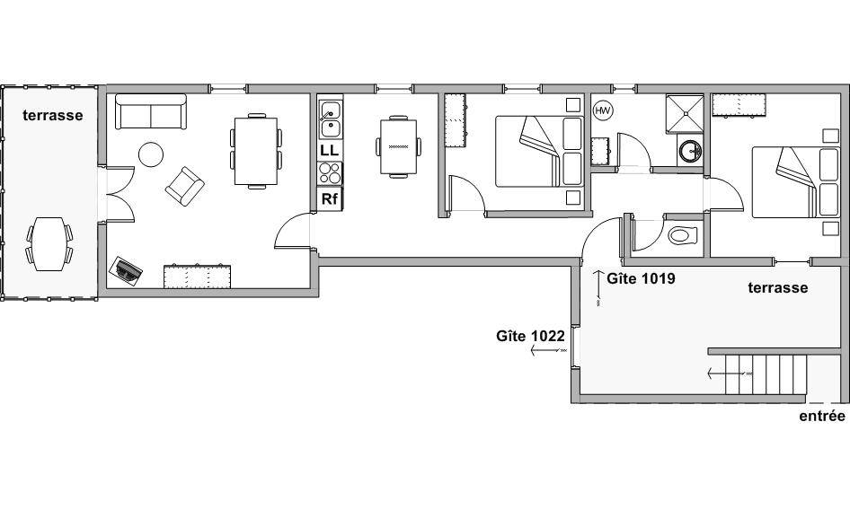 68 m² Gîte ∙ 2 Schlafzimmer ∙ 4 Gäste