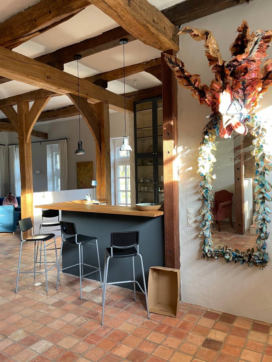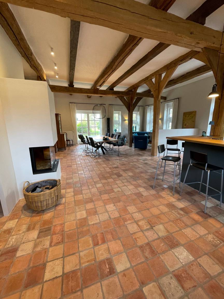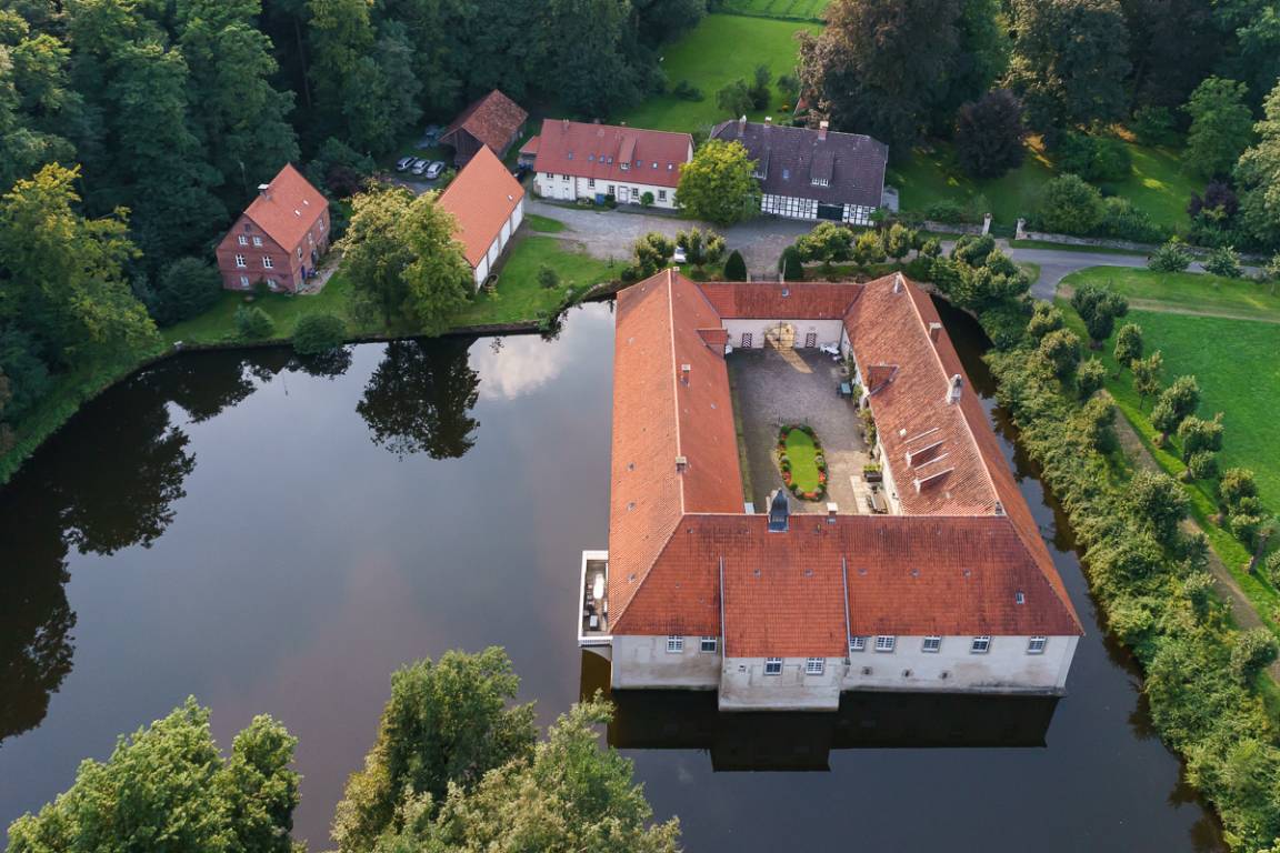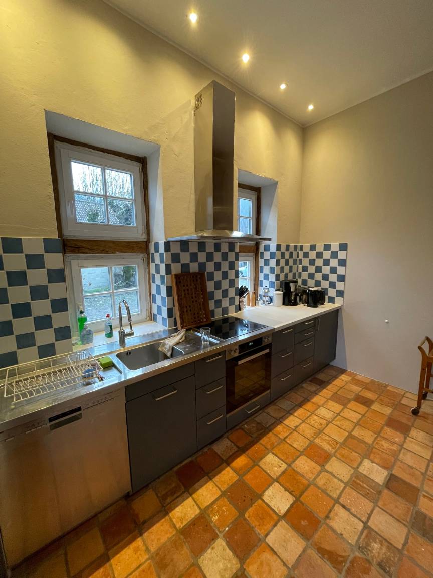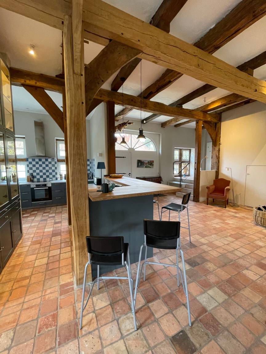Das 2021 komplett sanierte Fachwerkhaus in einer alten Stallung liegt auf dem Hofgelände des Wasserschloss Haus Marck.