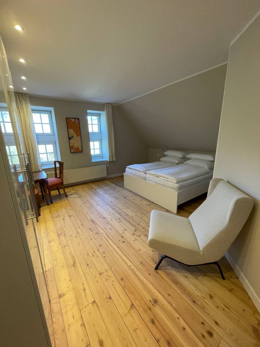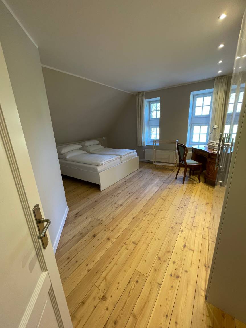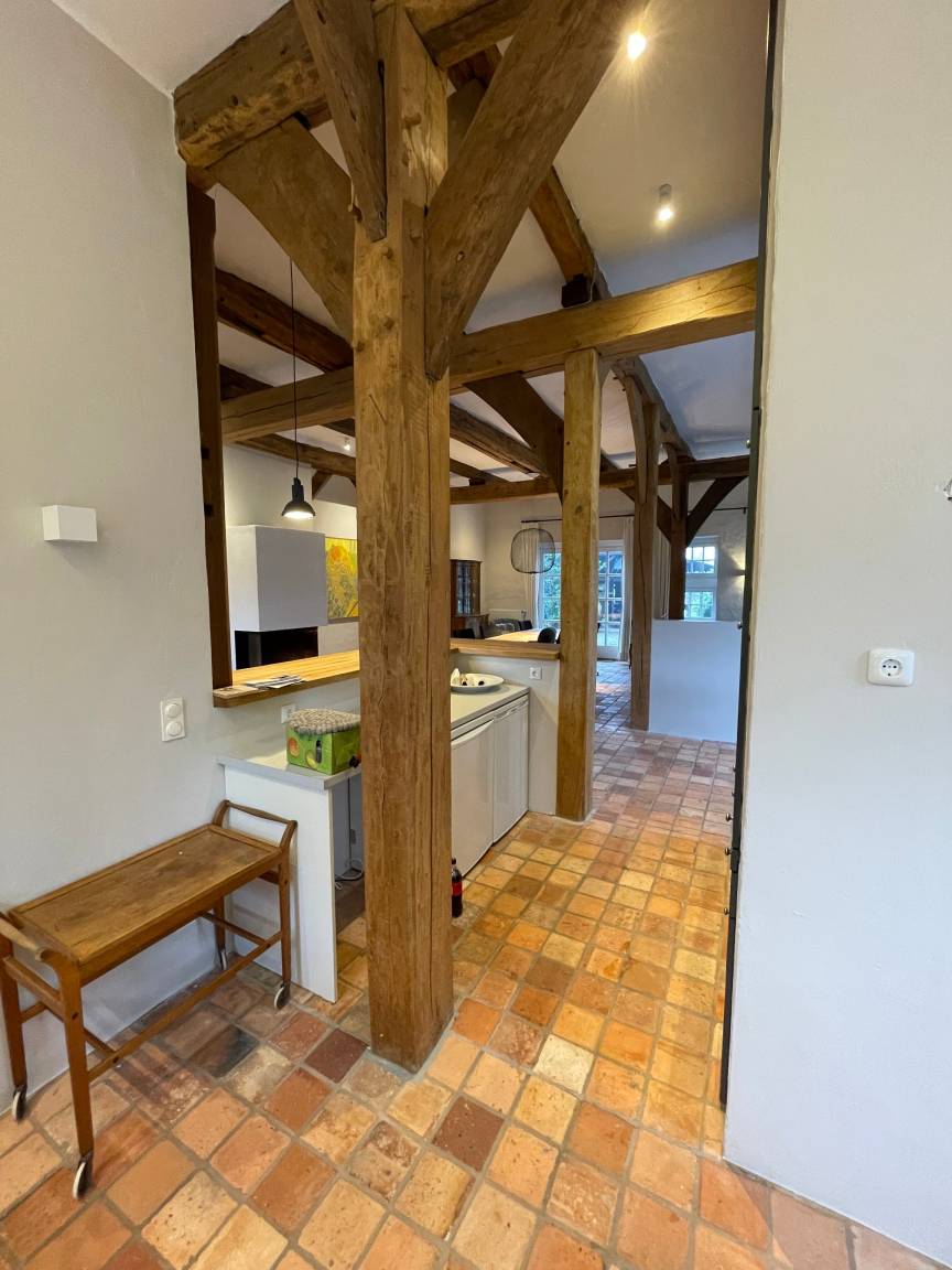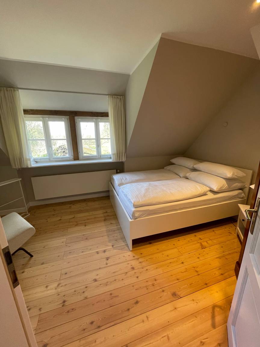 Das 2021 komplett sanierte Fachwerkhaus in einer alten Stallung liegt auf dem Hofgelände des Wasserschloss Haus Marck.