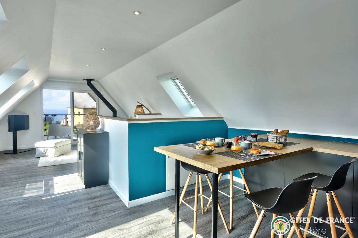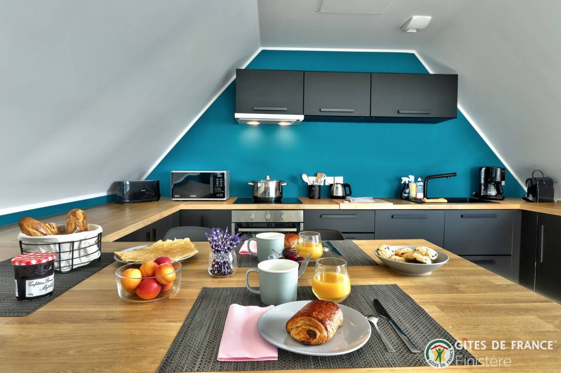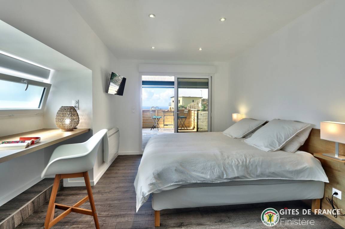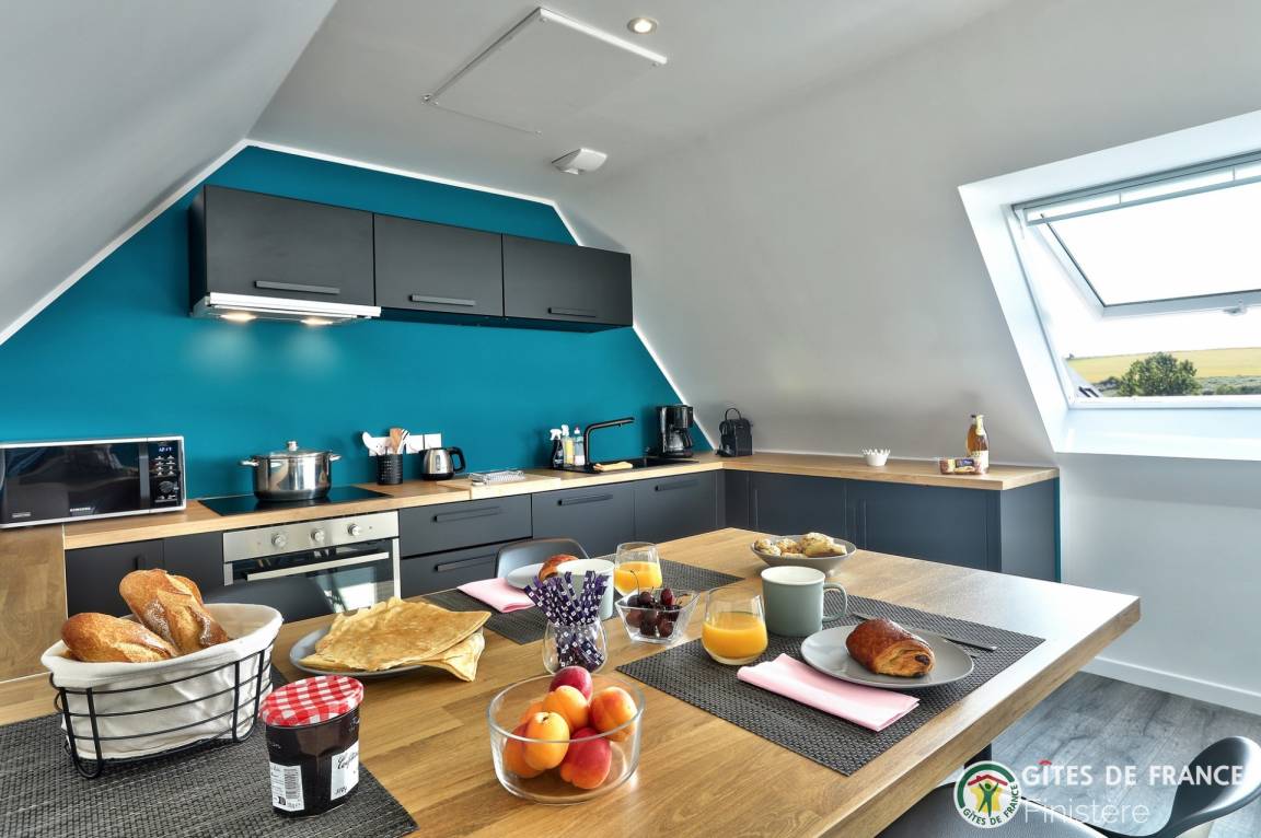 „La localisation du gite nous permet d'avoir accès à de nombreux endroits de la presqu'Ile et du Finistère sans passer tout son temps dans la voiture. Son aménagement, la qualité de la literie ou encore la propreté aident à recupérer entre 2 excursions, dans le calme et avec une très belle vue sur la baie.“