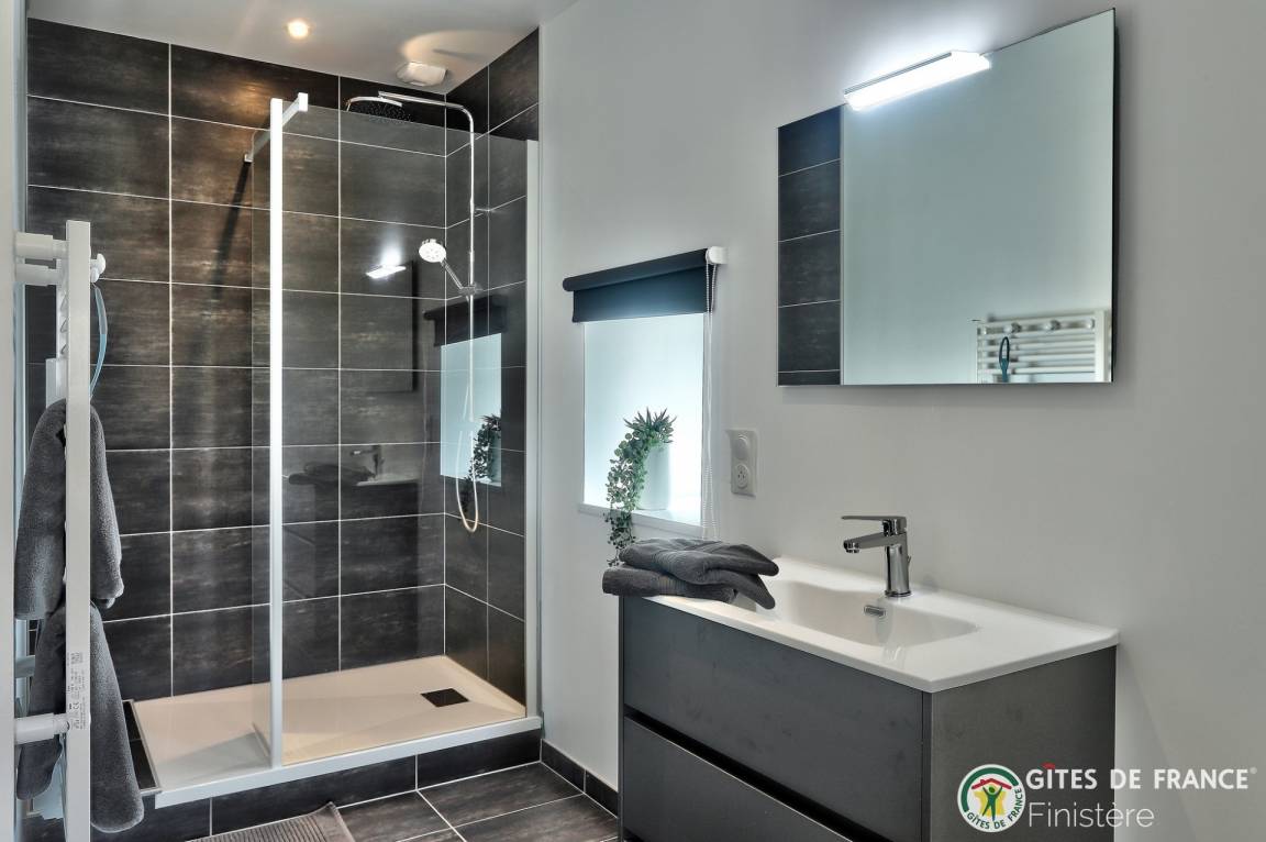 „Un gîte moderne, confortable, lumineux, calme et très bien agencé (un petit peu plus de lumière pour la cuisine serait souhaitable) à 2 pas d’une belle plage familiale, et où il est très agréable de se détendre sur la terrasse face aux lumières et couleurs changeantes de la mer et du ciel bretons. Idéal pour un séjour en couple, rien ne manque.“