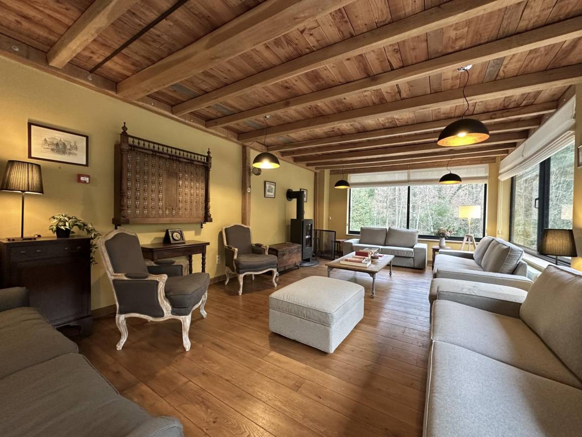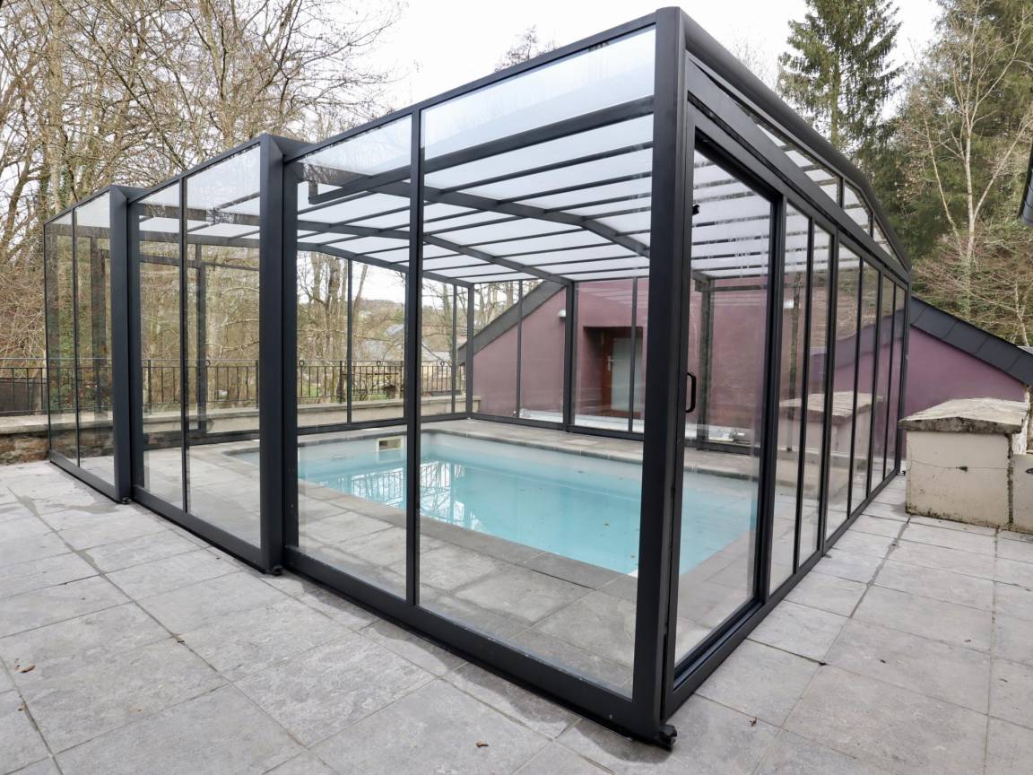 Hausbeschreibung : Dieses ehemalige Hotel wurde renoviert und in ein luxuriöses Ferienhaus auf einem 2000m² großen Grundstück umgewandelt. Es bietet Ihnen einen perfekten Aufenthalt mit der Familie, mit einem aufklappbaren Pool und einem Entspannungsbereich mit Sauna. Ein großes Esszimmer, ein gemütliches Wohnzimmer, eine voll ausgestattete Küche und eine Spielecke sorgen dafür, dass Sie eine tolle Zeit verbringen werden! Sie haben auch komfortable Zimmer, alle mit Bad, im Hauptgebäude oder im Nebengebäude