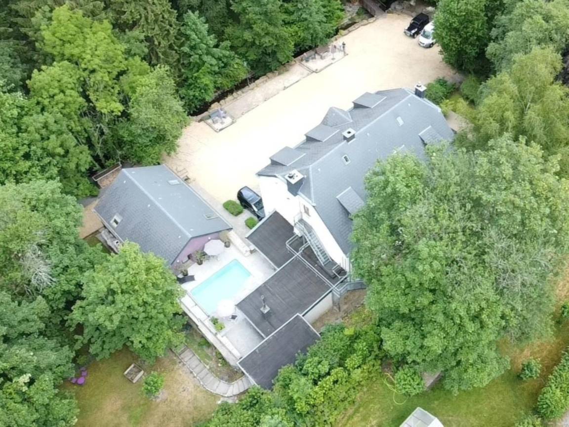 Terrasse(100 m²) mit Wellness Badewanne(alleinige Nutzung, 6 Personen) , Terrasse(40 m²), Garten(alleinige Nutzung, teilweise umzäunt, 2000 m²), Gartenmöbel, BBQ(Holzkohle), 10x Parkplatz, Trampolin, Pool(alleinige Nutzung, erwärmt, überdacht, 6 x 4 m., Tiefe: 1.4 - 1.5m, geöffnet von Mai bis einschließlich Sep), Boulebahn, 2x Kinderbett (ohne Bettwäsche), 2x Hochstuhl