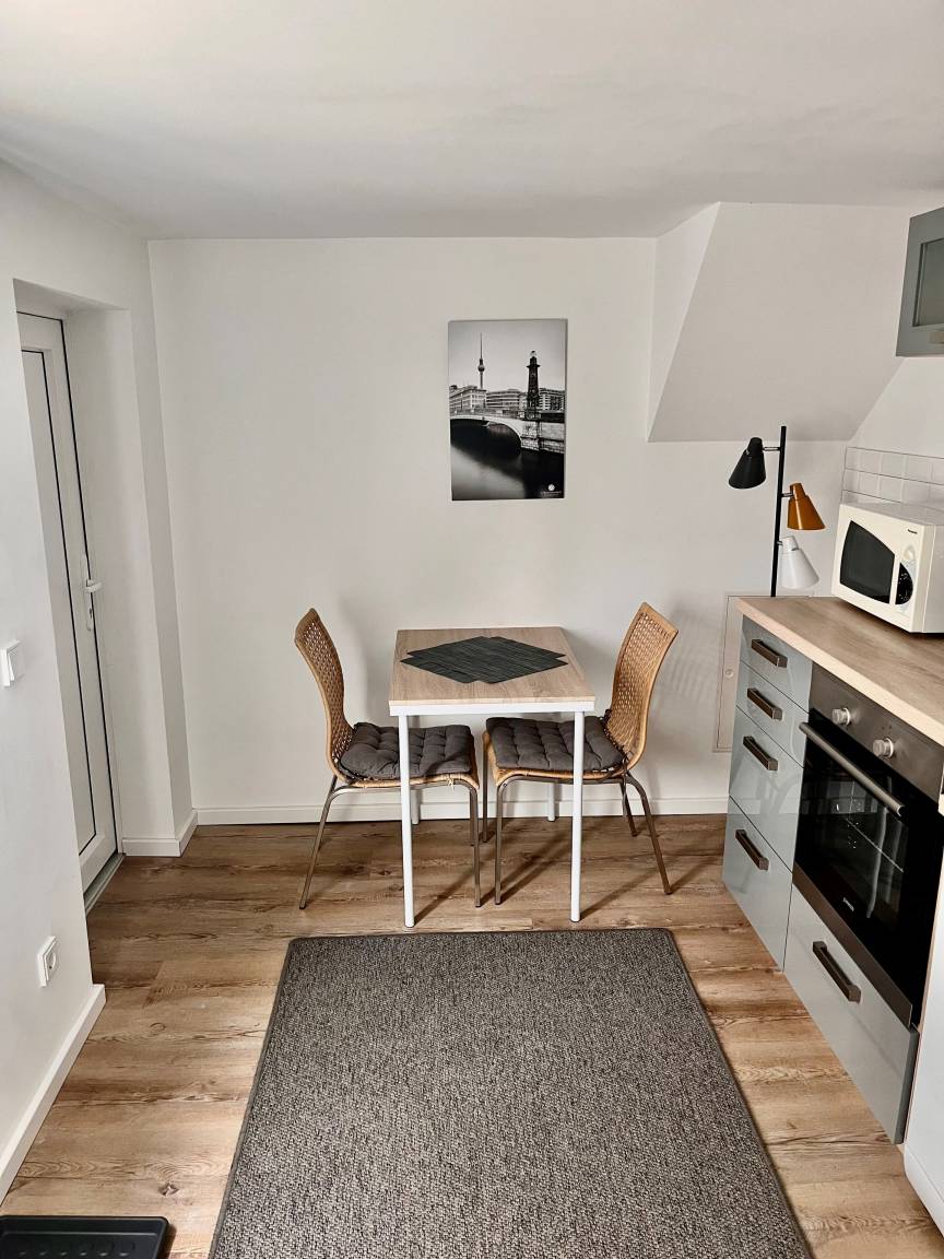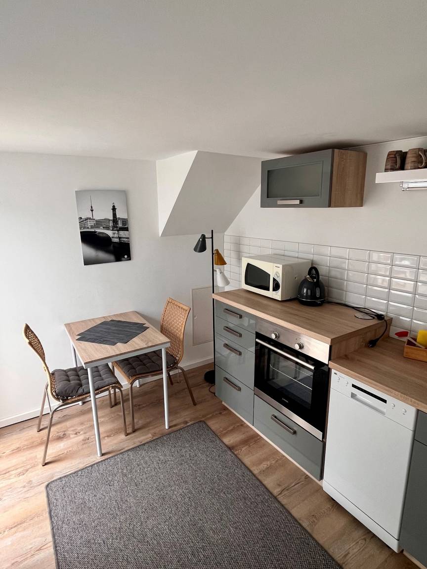 Schicke, neu eingerichtete Gästezimmer/Handwerkerzimmer in einem 2021 fertiggestellten Haus. Die Wohnung liegt im Erdgeschoss. Das 1-Zimmer Apartment verfügt über ein abgeschlossenes Schlafzimmer und einer Küche. Das Doppelbett im Schlafzimmer ist 1,80 m x 2,00 m (auch Einzelbetten möglich) und die Matratzen sind getrennt. Das Duschbad ist hochwertig ausgestattet. Die Wohnung ist mit einem Geschirrspüler, Mikrowelle, Kaffeemaschine, und ausreichend Geschirr und Töpfe ausgestattet. Die Wohnung verfügt über WLAN und TV mit USB-Anschluss.