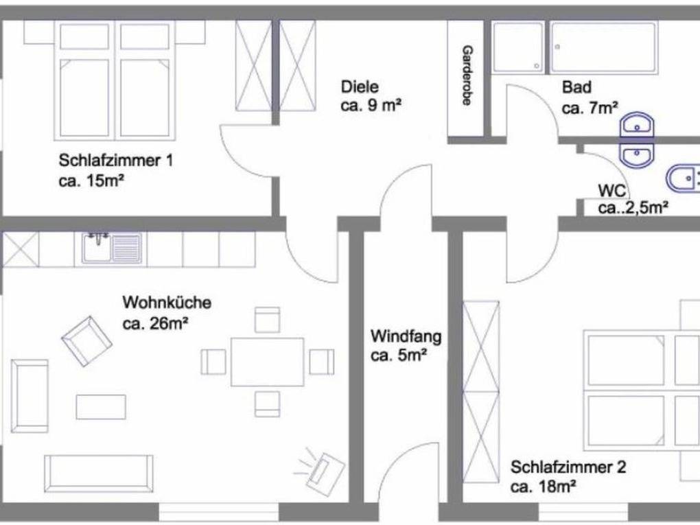 80 m² Ferienwohnung ∙ 2 Schlafzimmer ∙ 4 Gäste