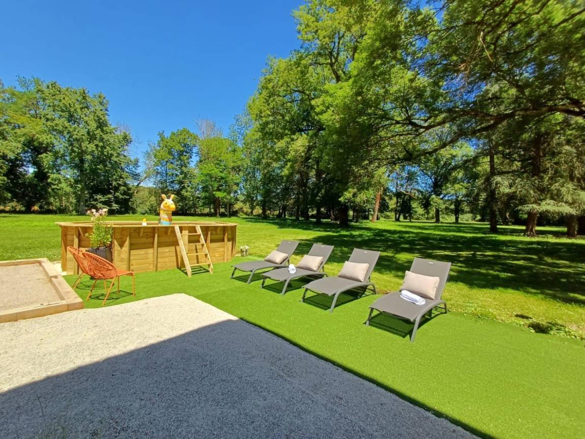 „Hemos pasado una semana muy agradable en familia. La casa es confortable y espaciosa, bien equipada, con una nevera-congelador suficiente para las 10 personas. En cuanto a los exteriores, hay un extenso jardín sombreado donde han gozado nuestros nietos. Agradecemos la amabilidad y discreción de los anfitriones Mr. et Madame García y su generoso detalle de bienvenida.“