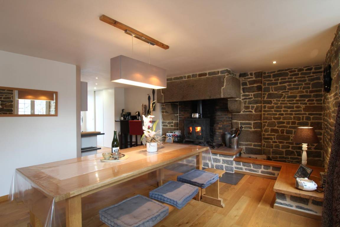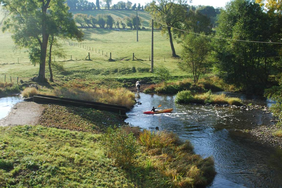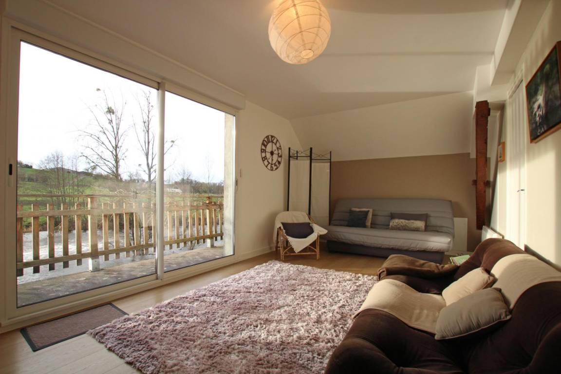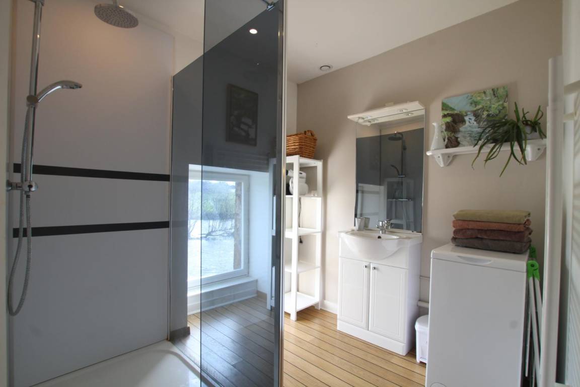 Freistehendes Haus am Flussufer. Über einige Steinstufen gelangt man ins Erdgeschoss: Wohnzimmer mit Sitzecke, Esszimmer und offene Einbauküche. Kaminofen. Schlafzimmer 1 (1 Doppelbett 160x200 cm), Duschbad (ebenerdige Dusche), WC. Im ersten Stock: Galerie mit Flussblick und Zugang zu einem Balkon, Schlafzimmer 2 (2 Einzelbetten 90x200 cm, die zusammengestellt werden können, und 1 Einzelbett 90x200 cm). Babyausstattung. Waschmaschine. Geschirrspüler. Fernseher und DVD-Player. CD-/Radio-Player. Plattenspieler. Elektrische Heizung (gegen Gebühr). Bettwäsche und Handtücher können gemietet werden. Reinigungsservice. Große Terrasse auf Stelzen mit Gartenmöbeln. Privater, umzäunter Garten (300 m²) am Fluss. Grill. Sonnenliegen. Eingezäunter Innenhof. Brennholz im Wert von 20 € ist im Haus vorhanden und wird nach Verbrauch abgerechnet. Nebengebäude mit Abstellmöglichkeiten für Fahrräder und Motorräder. Pferdebox auf Anfrage. Kostenlose
