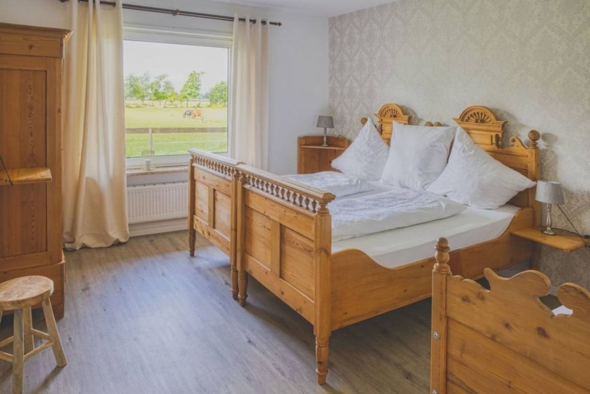 Die beiden Schlafzimmer wurden liebevoll mit tollen, restaurieren und auf 2 Meter verlängerten Einzelbetten aus dem vorherigen Jahrhundert eingerichtet und bieten Platz für 4 bis 5 Personen.