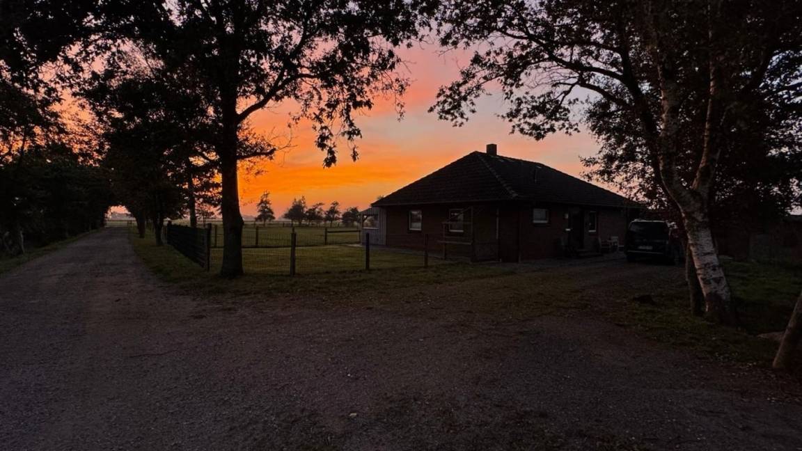 Von unserem 32 qm großen Wohn- & Eßzimmer, mit einem großem Panoranafenster und einer überdachten Terasse, könnt Ihr die schönsten Sonneruntergänge auf Eiderstedt erleben.