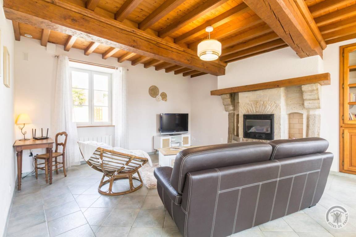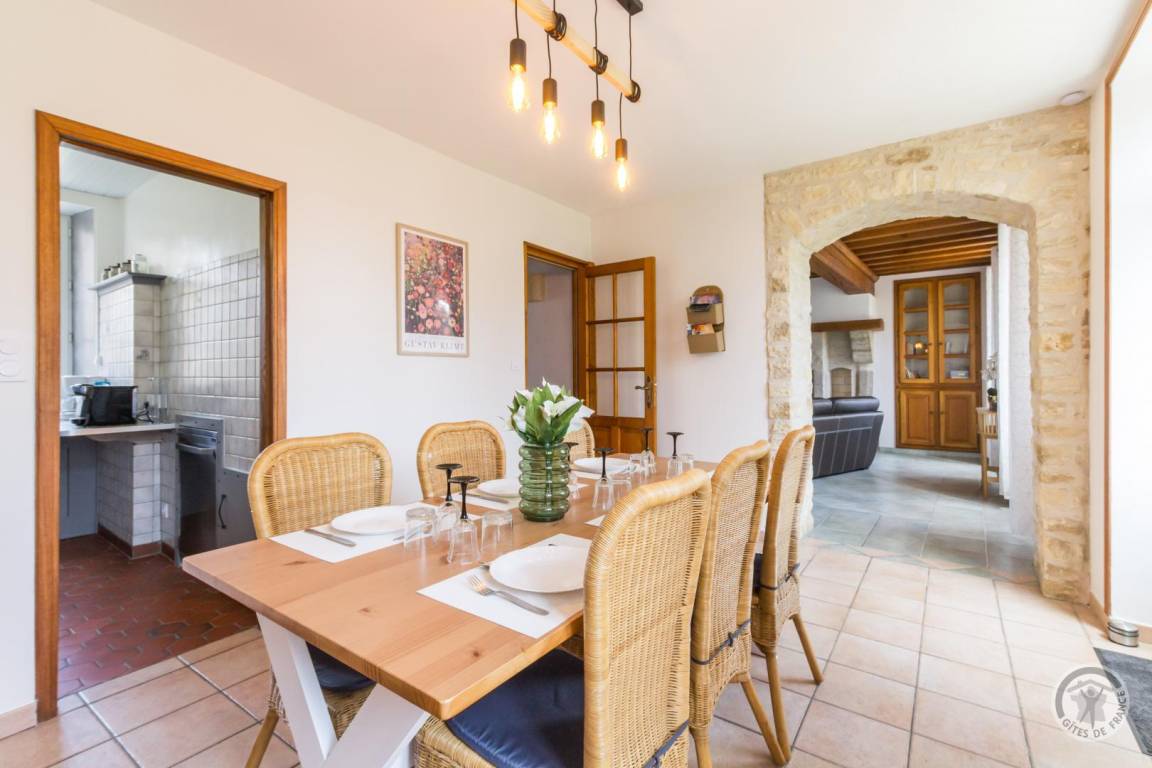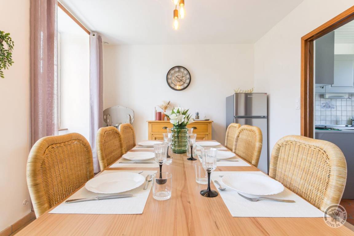 Freistehendes Haus. Erdgeschoss: Eingang. WC. Esszimmer. Halboffene Küche (Induktionskochfeld, Dunstabzugshaube, Geschirrspüler, Mikrowelle, Espressomaschine, Kühlschrank mit Gefrierfach). Großes Wohnzimmer (Dekorkamin, Fernseher mit Chromecast, 4/5G Internet, Brettspiele). Obergeschoss: Schlafzimmer 1 (Bett 140x190). Schlafzimmer 2 (Bett 160x200). Schlafzimmer 3 (Bett 90x190). Duschraum (Waschbecken, Duschkabine). WC. Außenbereich: 2 separate, mit Kies bedeckte, durch ein Tor abgeschlossene Höfe. Parkplatz. Überdachter Unterstand (Fahrräder, Motorräder). Holzterrasse auf dem gut sichtbaren Hügel. Eingezäunter und unabhängiger Garten. Gartenmöbel. Sonnenschirm. Grill. Outdoor-Spiele (Ball, Molky, Schläger, Pétanque-Kugeln). Waschküche im Freien (Waschbecken, Waschmaschine). Babyausstattung auf Anfrage erhältlich (Kinderbett mit Matratze, Hochstuhl und Badewanne). Elektroheizung inklusive. Bettwäsche und Handtücher werden gestellt. Endreinigung inklusive.