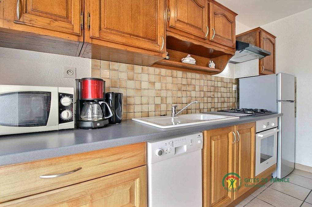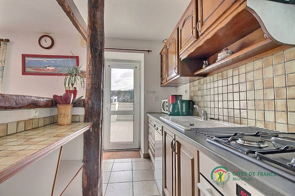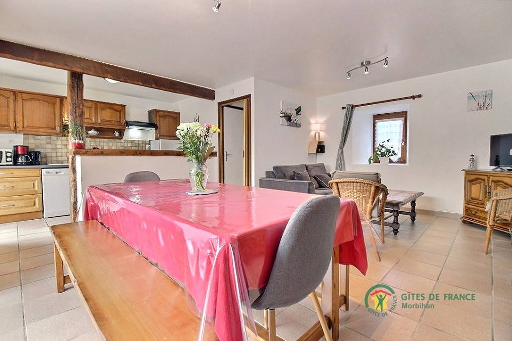 Ferienhaus anliegend an ein anderes Ferienhaus und an eine Unterkunft bei Theix (2 km). Essbereich/Kochecke/Wohnzimmerecke, 2 Zimmer (1 Doppelbett 160x200), 2 Einzelbetten), Bad mit Dusche/WC, WC. Elektrische Heizung, geschlossene Terrasse, Gartenmöbel, Grill, Garten gemeinsam (900 m²) mit Schaukel, Boules-Spielplatz, Sandkasten. Fernwanderweg GR34 15 km. Der ehemalige Stall wurde renoviert und in ein angenehmes bretonisches Haus umgebaut, die Innenräume sind mit alten Möbeln eingerichtet. Das Haus steht in einer bewaldeten Umgebung bei einem Teich. Kurze Aufenthalte ab 2 Übernachtungen. Wanderwege in der Nähe. Bei Strom-Aufpreis: nach aktuellem Normaltarif. Auf Anfrage: Haustücher (Tischdecke + Servietten + Geschirrtücher) 10 €/Aufenthalt. Anliegend an das Ferienhaus Nr. 25122.