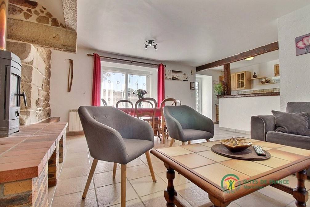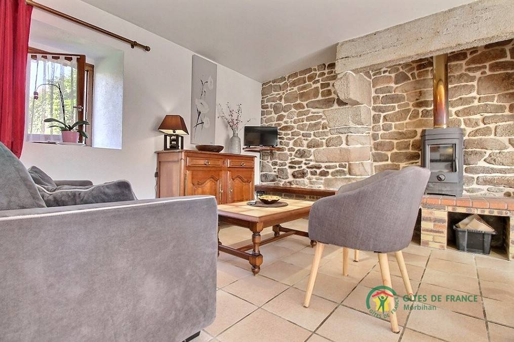 Gite adjacent to 2 accommodations, 2 km from Theix. Living room, kitchen corner, sitting area, 2 bedrooms (1 double bed, 2 single beds), shower, wc, electric heating, enclosed terrace, garden furniture, BBQ. Shared grounds 900 m² with swings, boules alley, sandpit. Walking tracks 15 km. Converted cowshed turned into a very pleasant house sitting in wooded grounds, near a little lake.