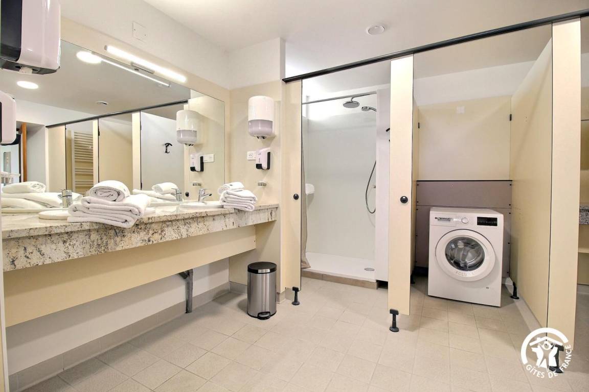 Ein Waschraum mit Waschmaschine