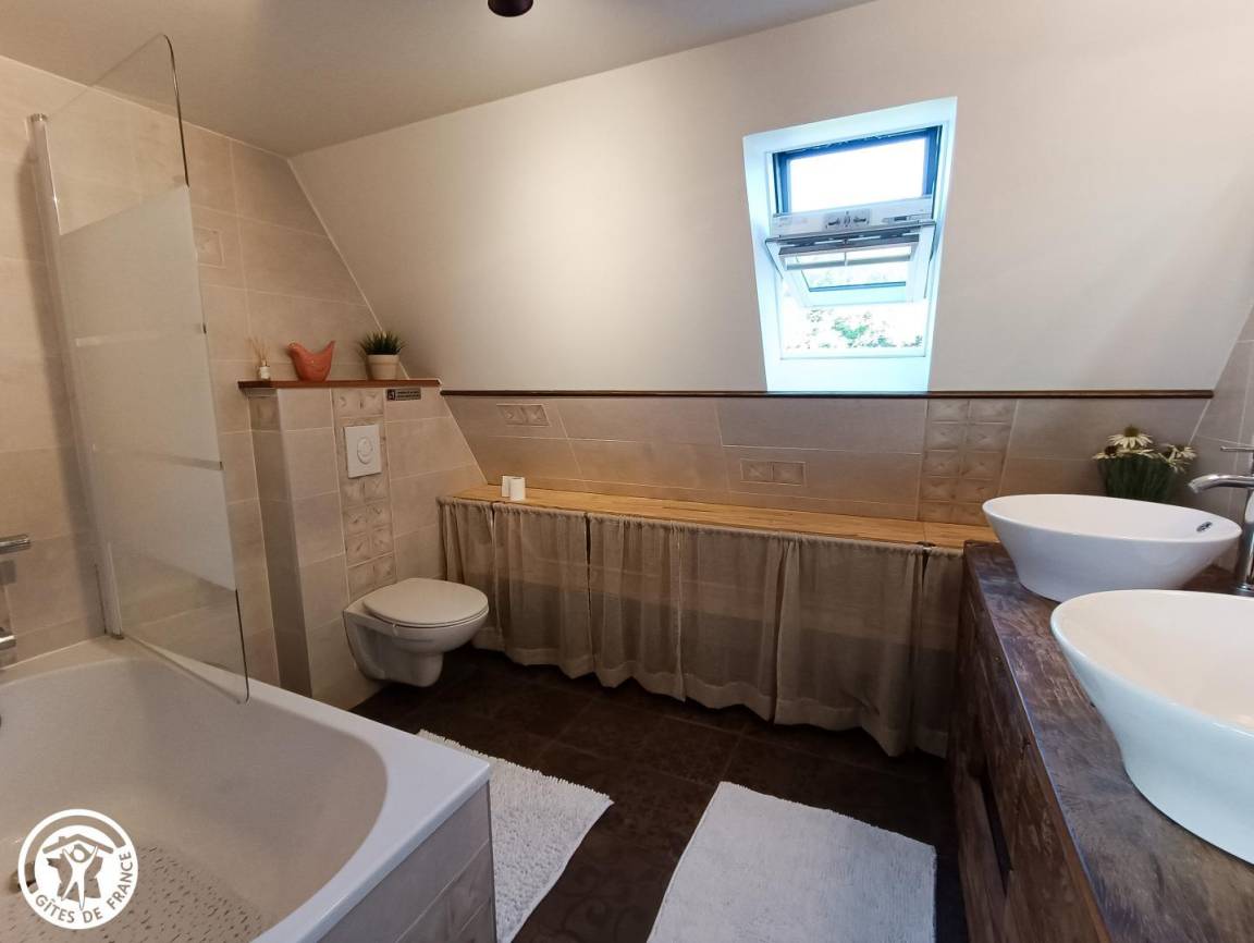 „Le gîte est situé dans un endroit très calme, sur le même terrain que la maison des propriétaires qui sont très discrets, disponibles et respectueux. Cette rénovation a su garder le charme de l'ancien en apportant une touche de moderne. Tout est très bien aménagé, équipé et décoré, nous avons passé un séjour parfait. Le poêle à bois idéalement situé dans le salon a été un vrai plus. Marie, merci beaucoup pour votre accueil irréprochable.“