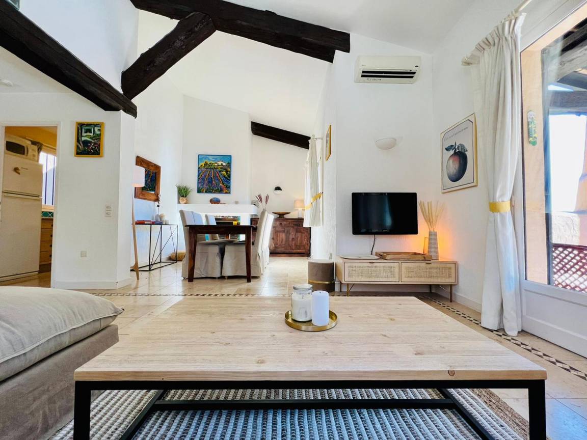 Heizung(durch Klimaanlagen), Klimaanlage, Terrasse(alleinige Nutzung, überdacht, 12 m²), Garten(alleinige Nutzung, umzäunt, 60 m²), Liegen, 1x Parkplatz, Liegestühle, Parasol, Pool(Gemeinschaftliche Nutzung mit anderen Gästen, im Garten, umzäunt, 15 x 6 m., Tiefe: 2.5m, geöffnet von Apr bis einschließlich Okt), Boulebahn, Tischtennisplatte, 1x Kinderbett (ohne Bettwäsche), 1x Hochstuhl, Sonnenschirm