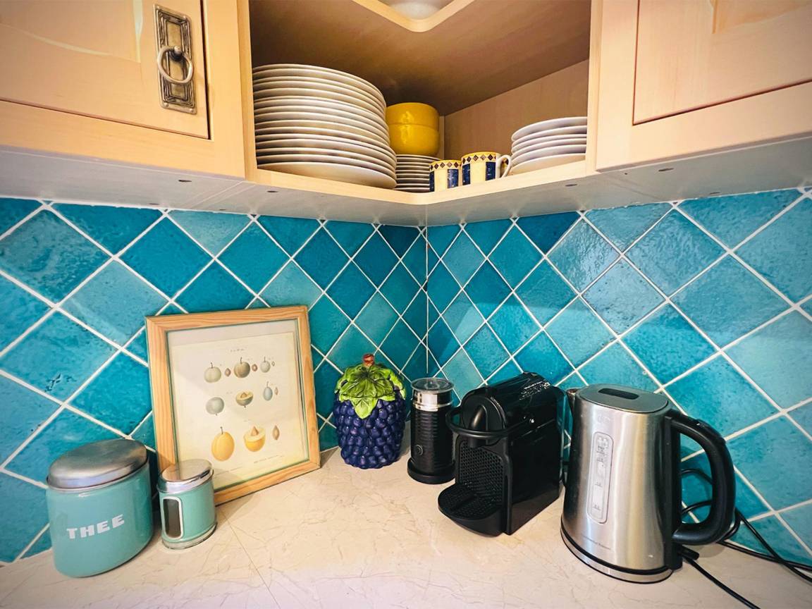 In der 1. Etage: Küche mit Wasserkocher, Toaster, Kochherd(4 Kochplatten, Ceranfeld), Dunstabzugshaube, Kaffeemaschine(Filter), Backofen(Grillofen), Mikrowelle, Geschirrspüler, Kühl-/Gefrierkombination, Stabmixer , Wohn/Esszimmer mit TV(Flatscreen, Satellit, Niederländische TV-Kanäle, internationale TV-Kanäle), Esstisch, Dekokamin, Sitzecke