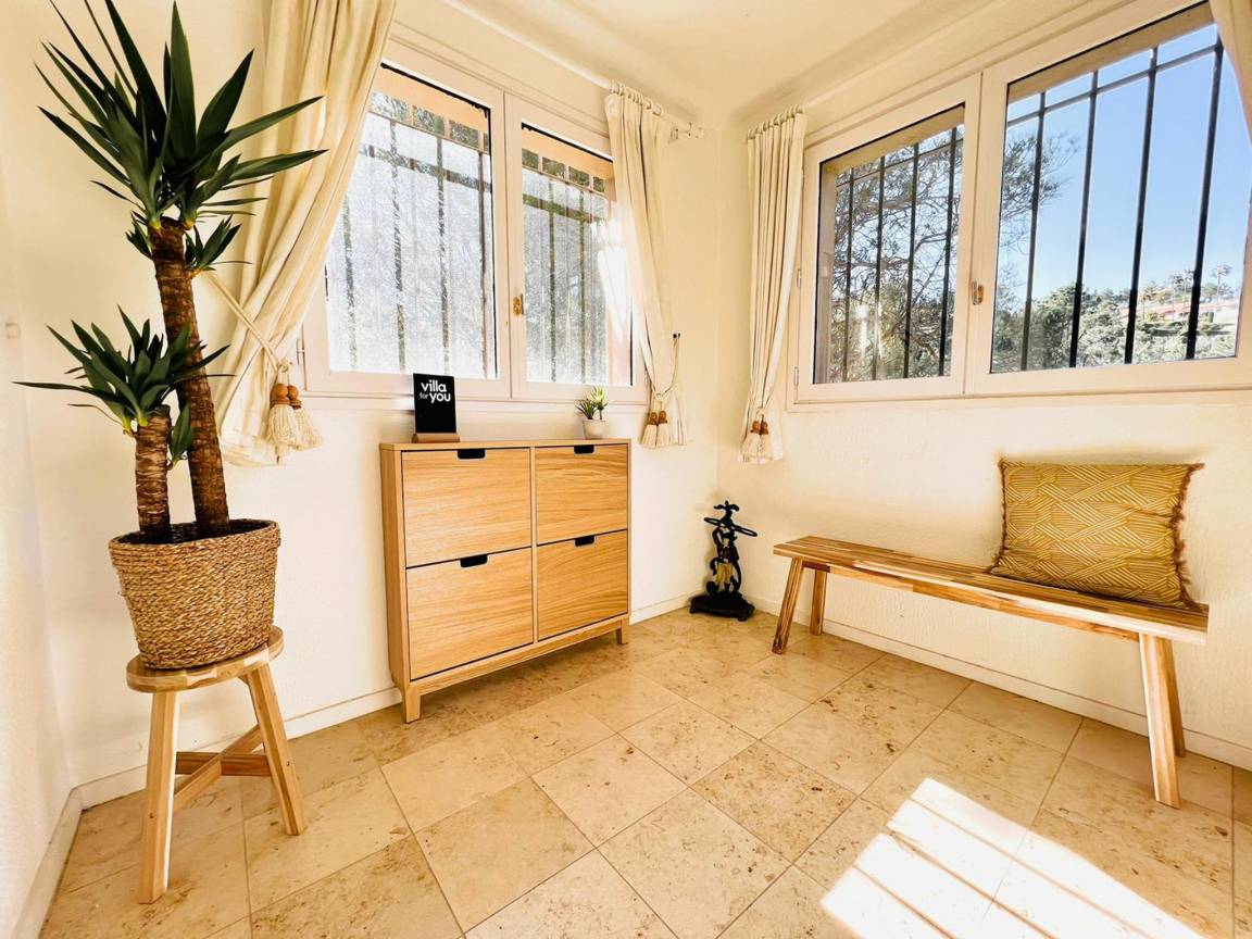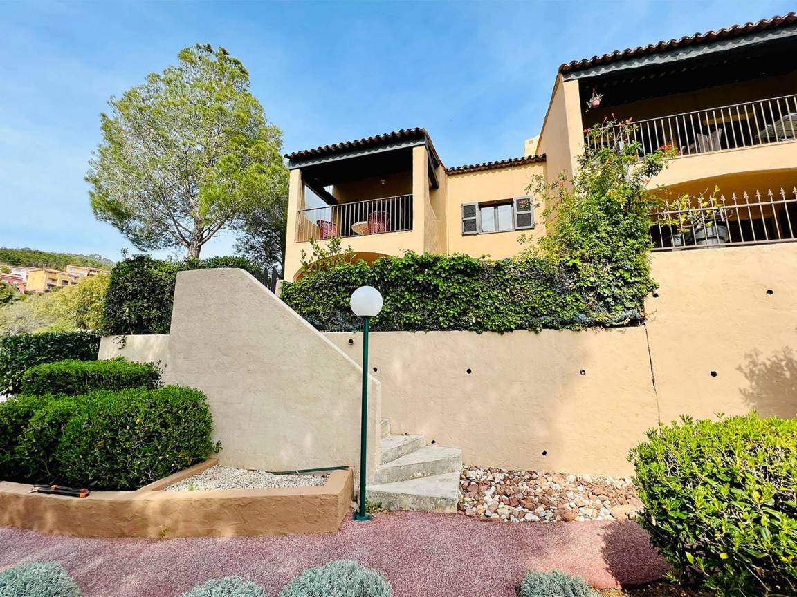 Hausbeschreibung : Diese ansprechend eingerichtete Unterkunft ist im lebhaften Badeort Théoule-sur-Mer gelegen. Das Haus erstreckt sich über 2 Etagen und befindet sich in einer ruhigen, sicheren Anlage mit einem Gemeinschaftspool. Lehnen Sie sich mit einem guten Buch auf den Liegestühlen am Pool zurück oder genießen Sie ein Getränk Ihrer Wahl auf Ihrer eigenen Terrasse mit Blick auf den Pool und das Meer. Wenn es etwas kälter ist, machen Sie es sich im Wohnzimmer mit seinem gemütlichen Kamin gemütlich. Herrlich!