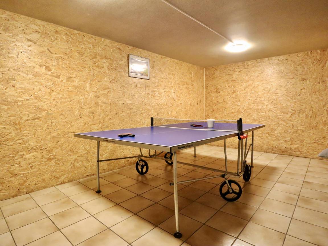 Souterrain: Freizeitraum mit Tischtennisplatte, Tischfußball, Billard