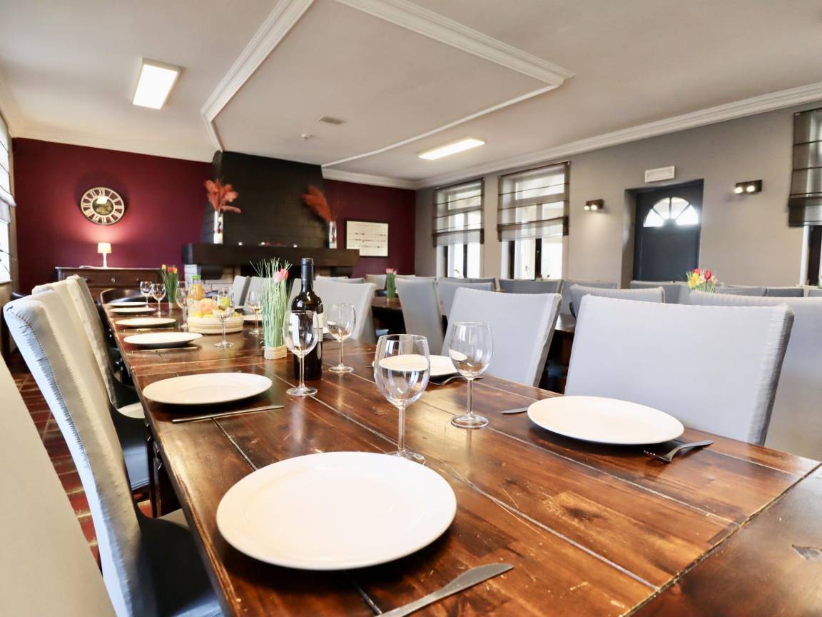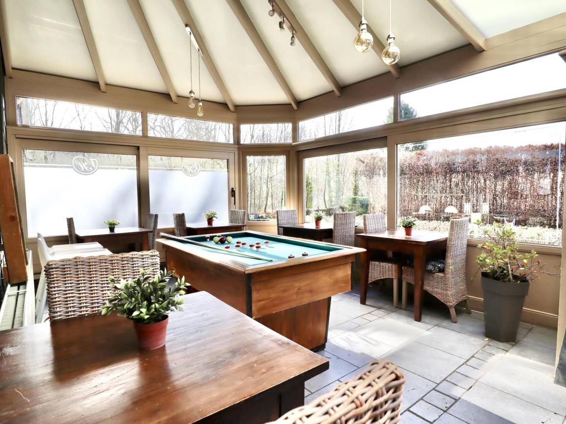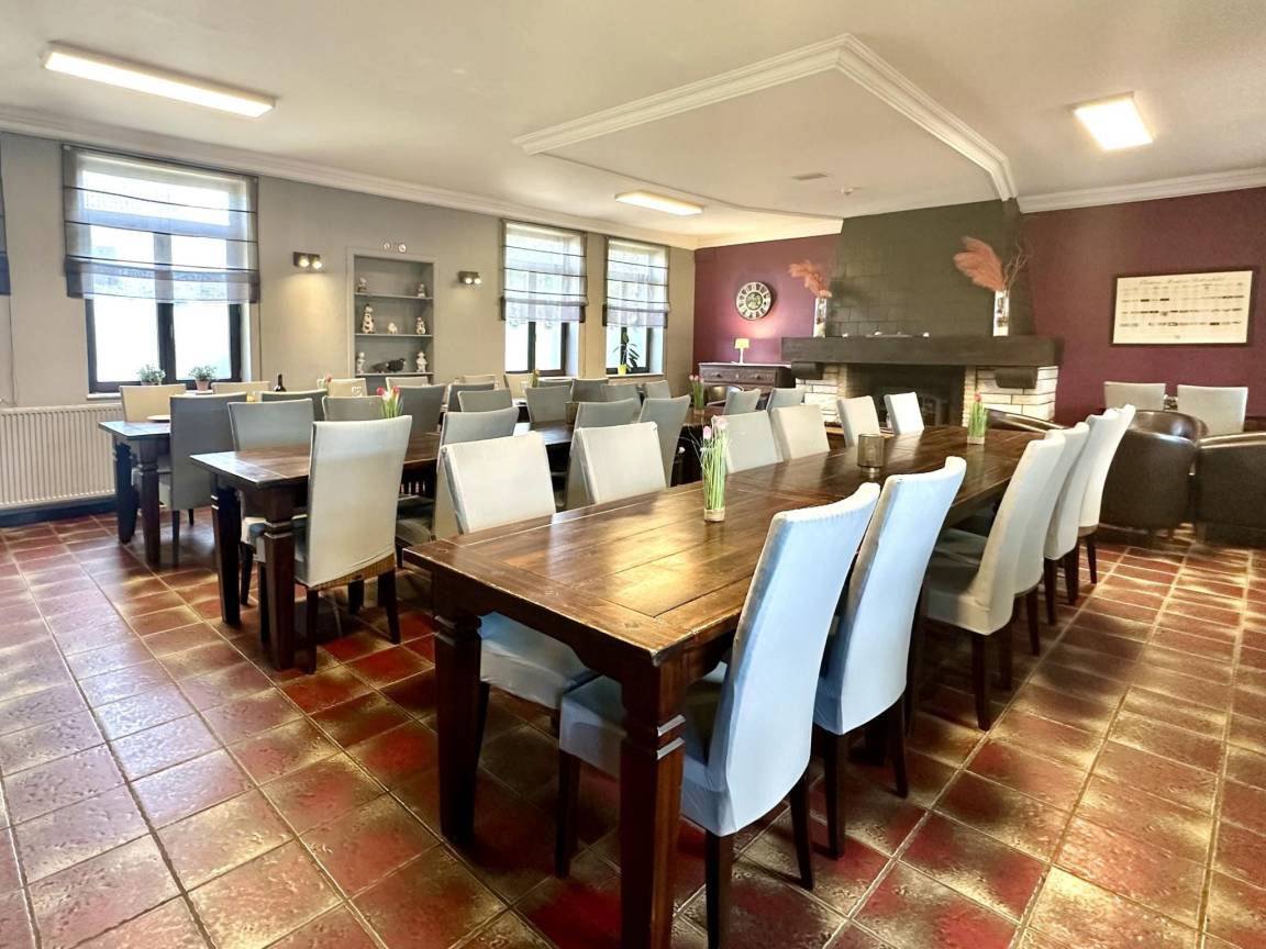 Hausbeschreibung : Dieses Gruppenhaus ist ideal für geselliges Beisammensein. Jedes Schlafzimmer bietet Privatsphäre mit eigenem Bad. Es gibt ein geräumiges Esszimmer, eine professionelle Küche und verschiedene Sitzecken mit Fernseher sowie eine Bar. Es stehen Spielräume mit drei Billardtischen, Airhockey, Tischfußball und eine Tischtennisplatte zur Verfügung. Im eingezäunten Garten können die Kinder herrlich spielen, es gibt eine Schaukel und eine Rutsche. Zünde den Grill an im Sommer & Kaminfeuer im Winter