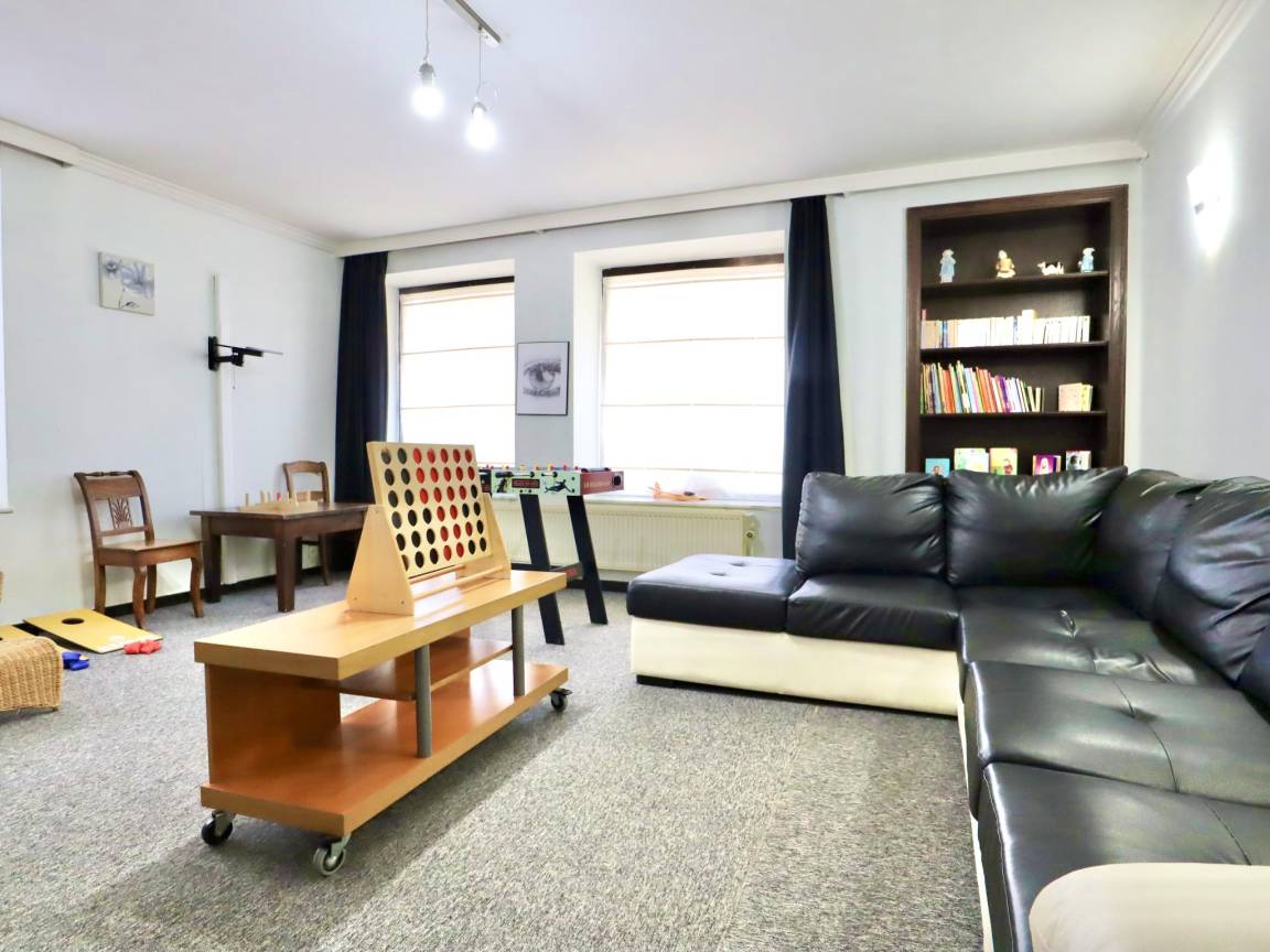Souterrain: Freizeitraum mit Tischtennisplatte, Tischfußball, Billard