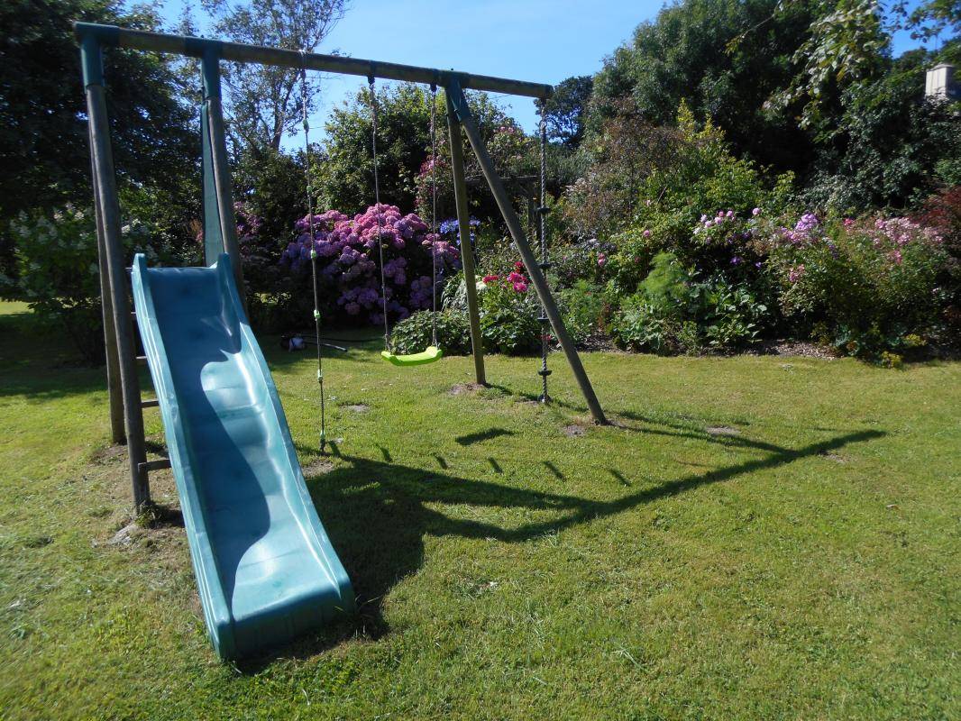 Doppelhaushälfte neben dem Haus des Eigentümers. Im Erdgeschoss: Waschküche (WC, Waschmaschine, kleiner Kühlschrank). Wohn-/Esszimmer mit Kaminofen, TV, Internetanschluss und DVD-Player. Offene Einbauküche (Backofen, 4-Flammen-Gasherd, Mikrowelle, Geschirrspüler, Elektroherd, Filterkaffeemaschine und Senseo-Kaffeemaschine, Kühlschrank mit Gefrierfach). Im Obergeschoss: Schlafzimmer 1: zwei Einzelbetten (90 x 190 cm), Schlafzimmer 2: ein Doppelbett (160 x 200 cm) und Schlafzimmer 3: zwei Einzelbetten (90 x 200 cm). Duschbad. WC. Babyausstattung (Reisebett, Hochstuhl, Babybadewanne und Wickelauflage). Heizkosten werden extra berechnet (Pauschalpreis). Brennholz ist auf Anfrage erhältlich. Bettwäsche wird gestellt und die Betten sind bei Ankunft bezogen. Handtücher und Haushaltswäsche können gemietet werden. Reinigungsservice wird extra berechnet. Privater, umzäunter Innenhof mit Zugang zum angelegten Garten des Eigentümers (Schaukel). Gartenmöbel. Grill. Kleines Nebengebäude. Parkplatz.