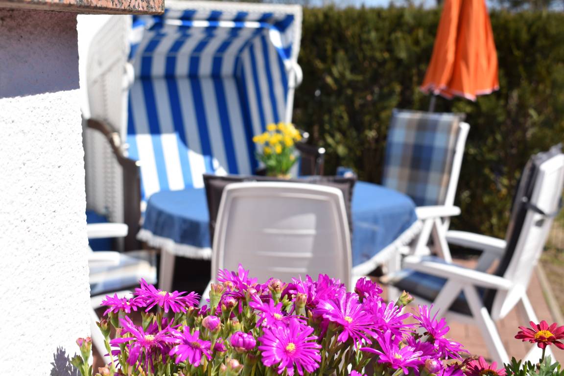 Abgerundet wird das EG mit einer Terrasse und den entsprechenden Gartenmöbeln. Ein Strandkorb bietet Ihnen von Mai - September dann auch noch das perfekte Ostseefeeling.