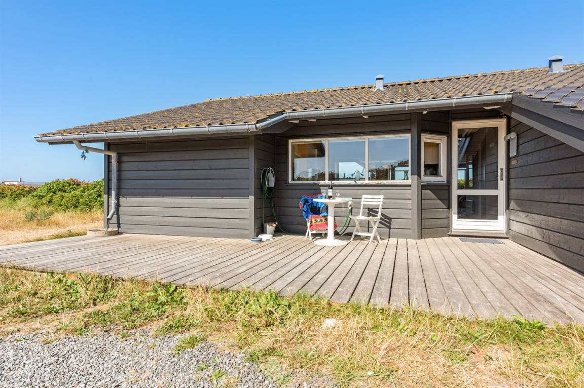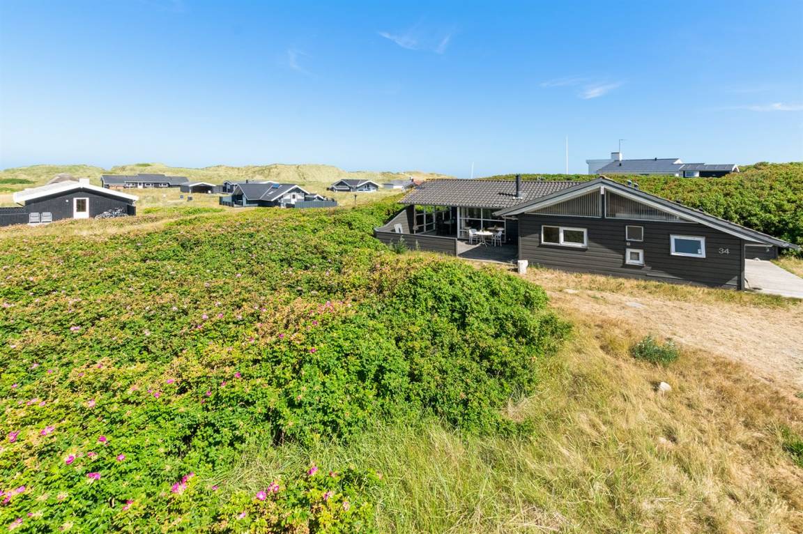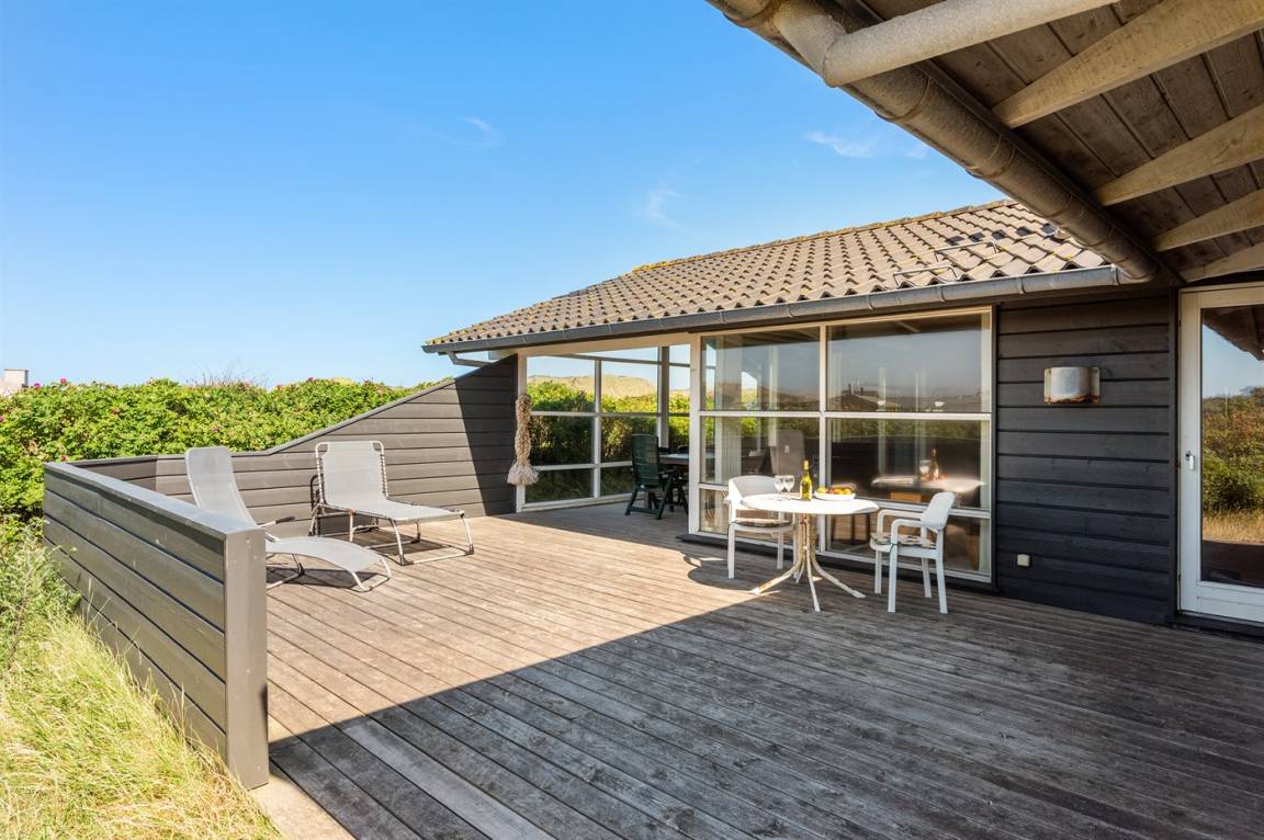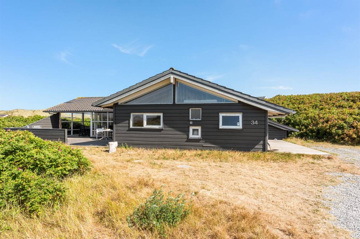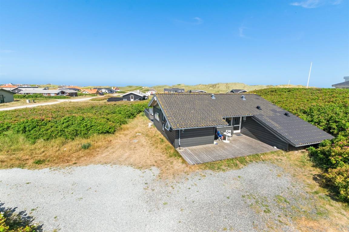Helles, tolles und wohlausgestattetes Qualitätshaus nur etwa 150 m vom besten Badestrand entfernt. Das Haus liegt etwas zurückgezogen an einer Düne. Von der überdachten Terrasse hat man einen schönen Blick auf die Dünen und den Abendhimmel. 2 der Schalfplätze sind auf dem offene Obergeschoss.