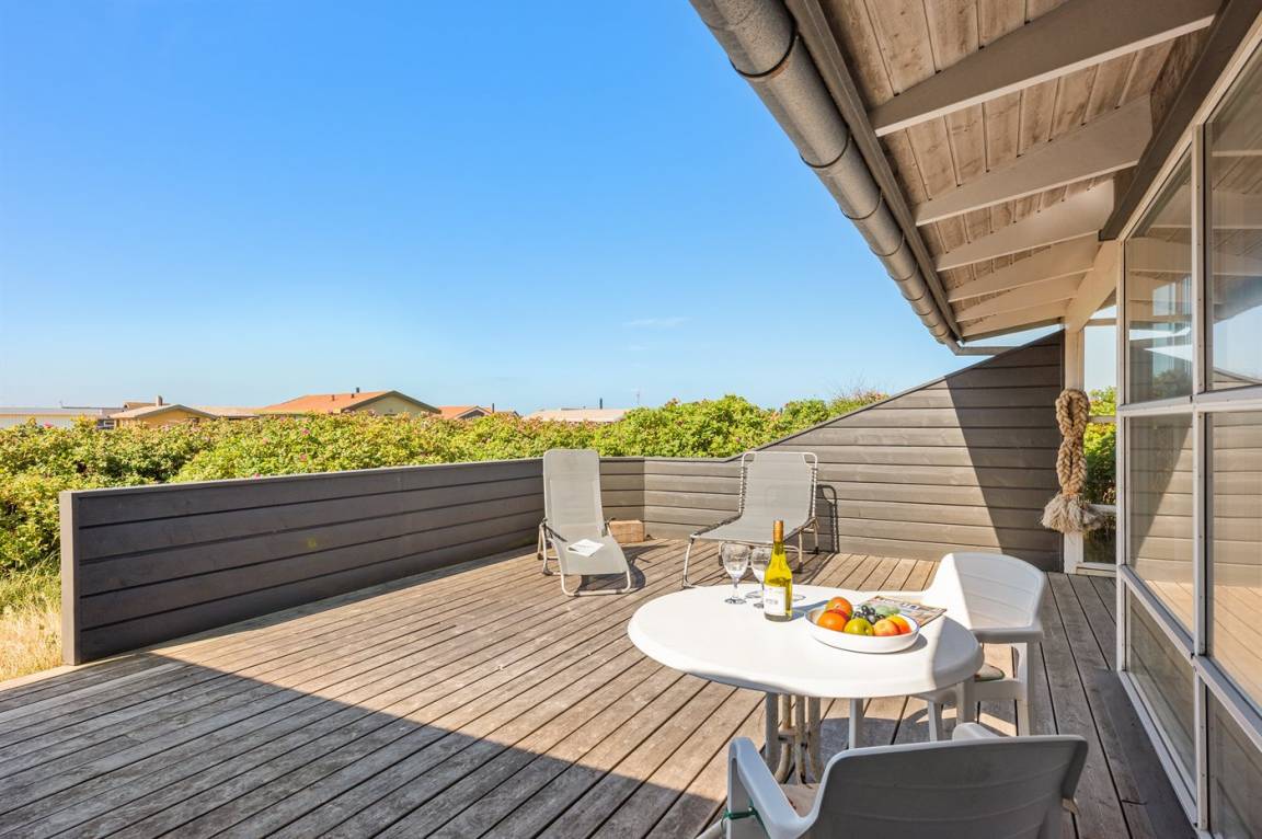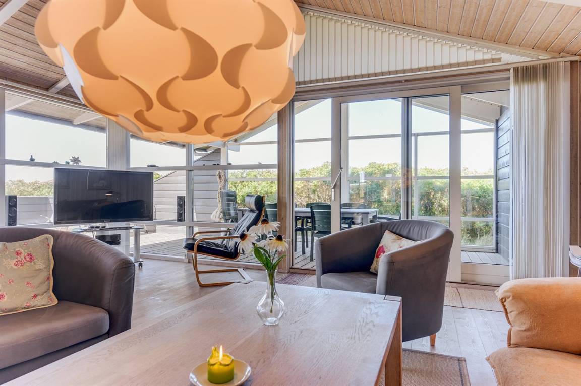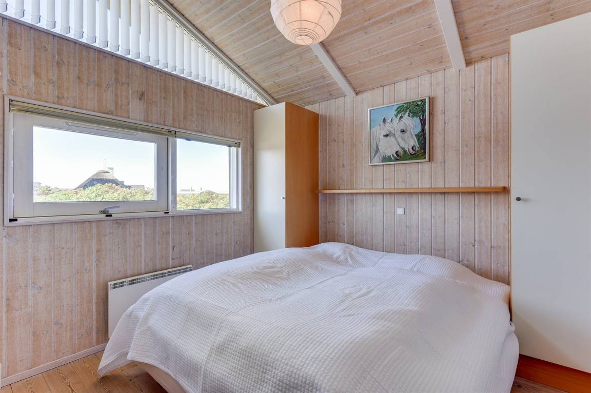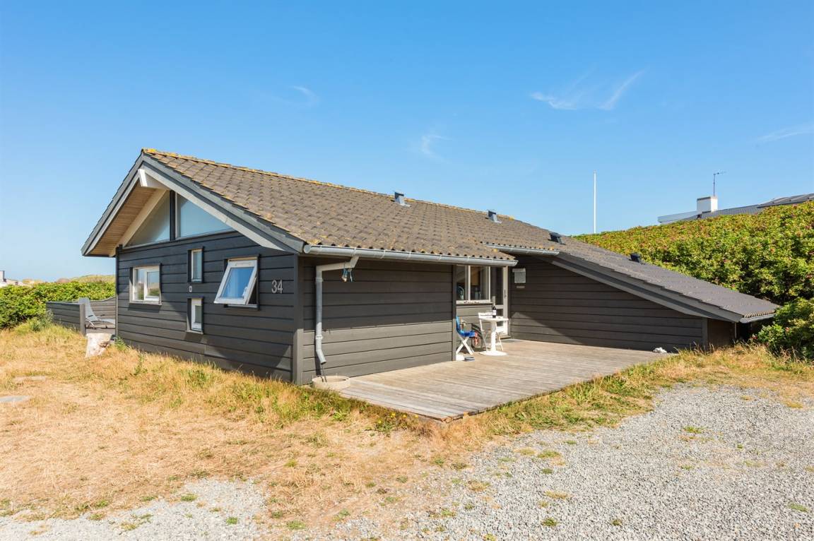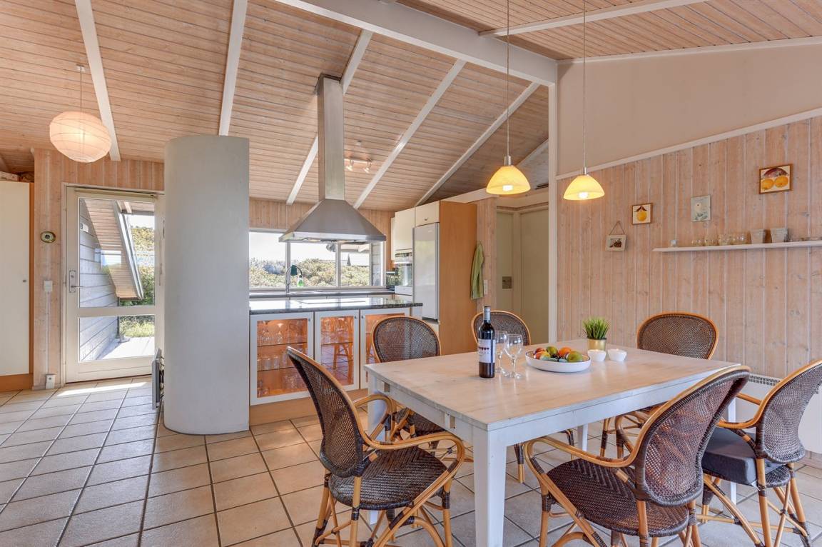 Helles, tolles und wohlausgestattetes Qualitätshaus nur etwa 150 m vom besten Badestrand entfernt. Das Haus liegt etwas zurückgezogen an einer Düne. Von der überdachten Terrasse hat man einen schönen Blick auf die Dünen und den Abendhimmel. 2 der Schalfplätze sind auf dem offene Obergeschoss.