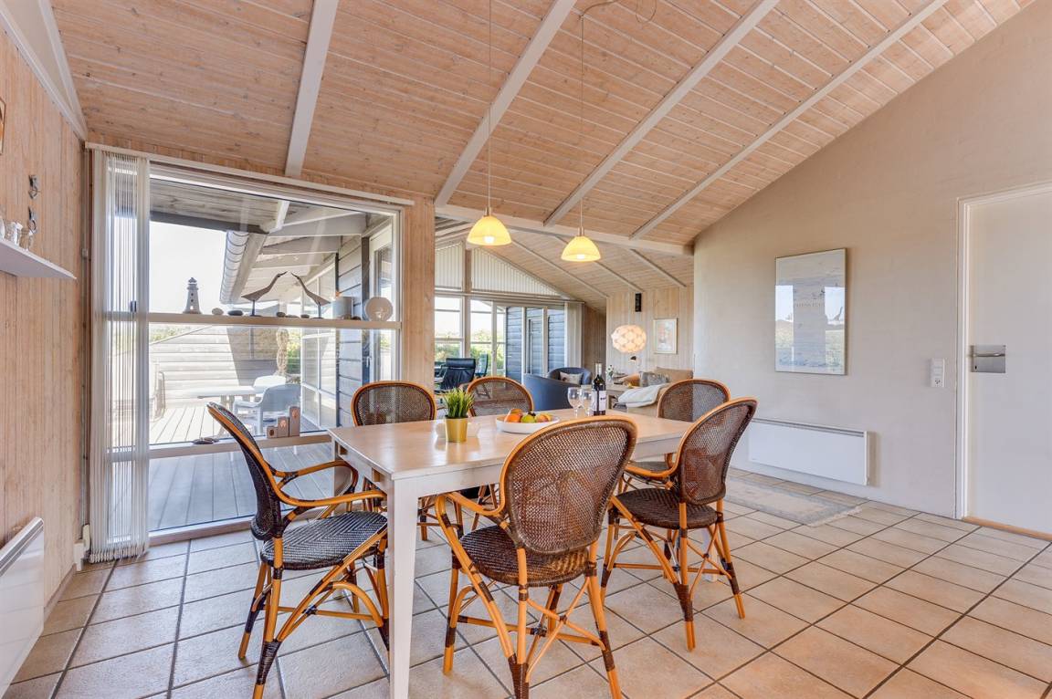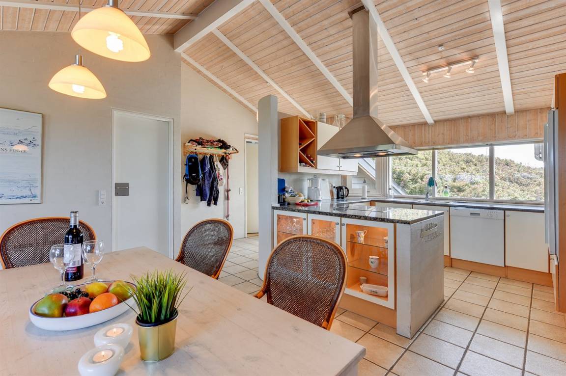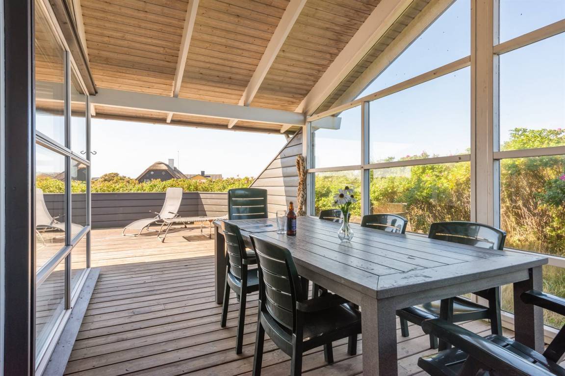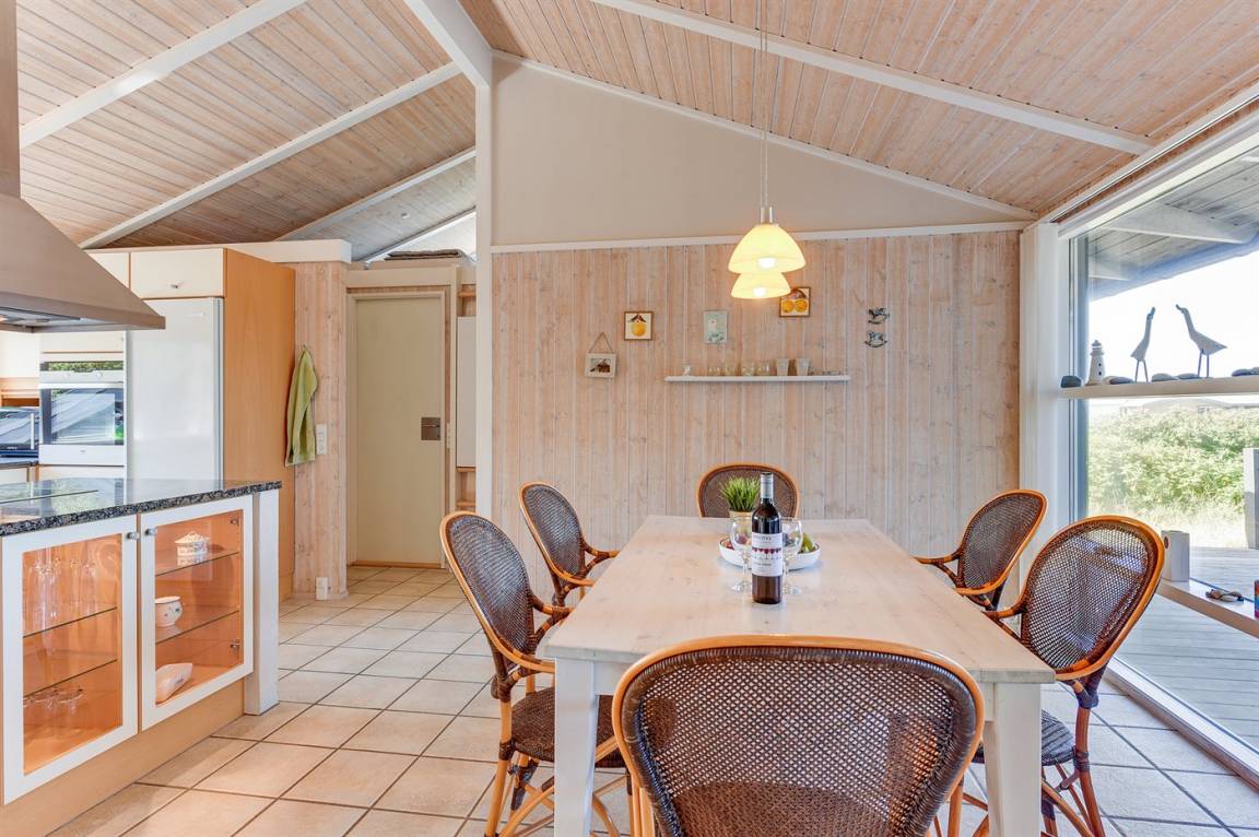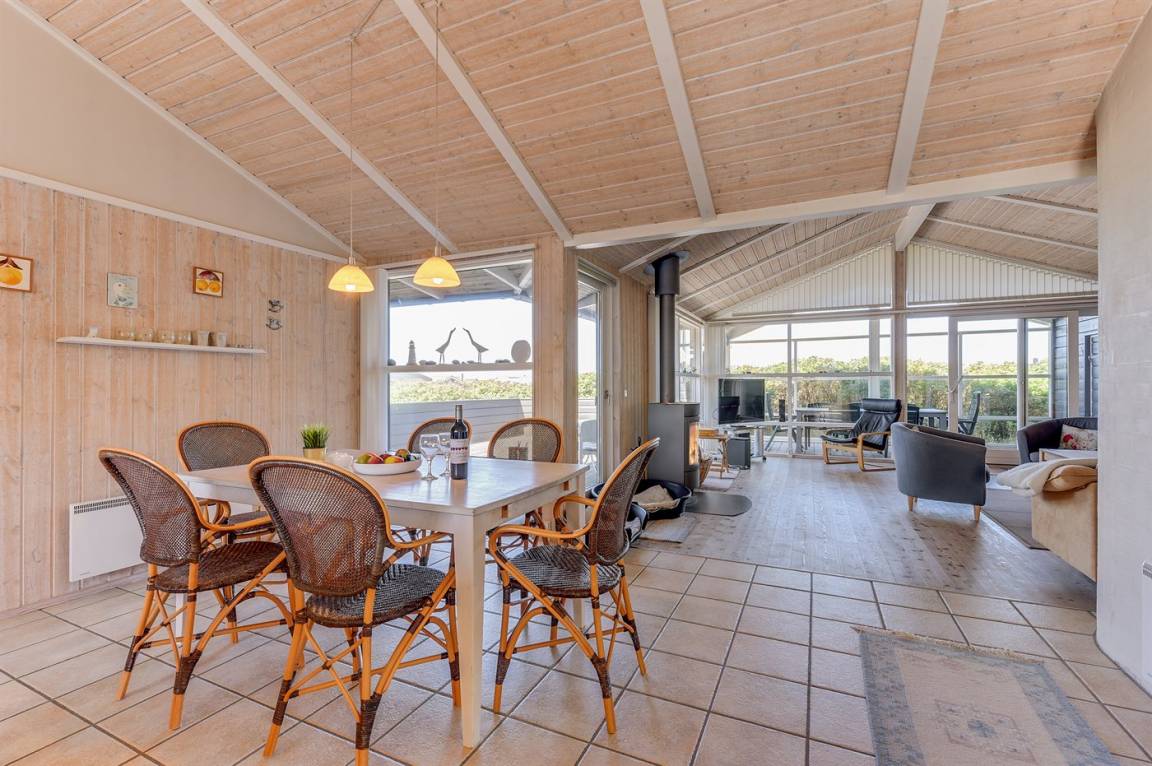 Helles, tolles und wohlausgestattetes Qualitätshaus nur etwa 150 m vom besten Badestrand entfernt. Das Haus liegt etwas zurückgezogen an einer Düne. Von der überdachten Terrasse hat man einen schönen Blick auf die Dünen und den Abendhimmel. 2 der Schalfplätze sind auf dem offene Obergeschoss.