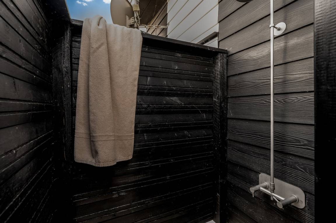 DraußenDie Ferienunterkunft liegt auf einem 1400 m² großen Naturgrundstück. Die Entfernung zum Meer beträgt 400 m. Die nächste Einkaufsmöglichkeit liegt 200 m entfernt. Es steht ein 139 m² Terrassenareal zur Verfügung. Außerdem gibt es 12 m² überdachte Terrasse. Es ist ein Ladestecker für Elektroautos installiert. Parkplatz auf dem Grundstück.
