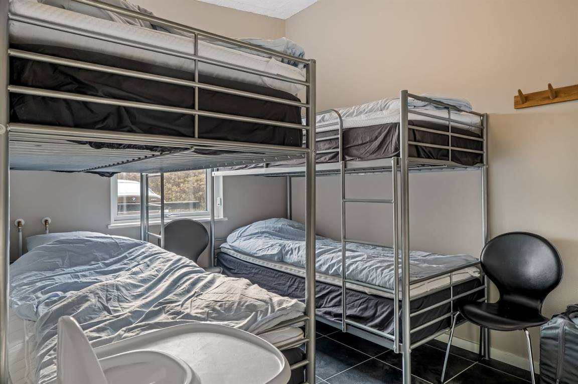 „The vacation at the holiday home: Det var meget skrabet med køkkenudstyr og service. De fleste køkkenredskaber var i virkelig billig kvalitet og der var kun få glas og tallerkner. Værelserne var virkelig skrabet indrettet. Man kunne måske stille en stol ind til tøj og hænge et spejl op.“
