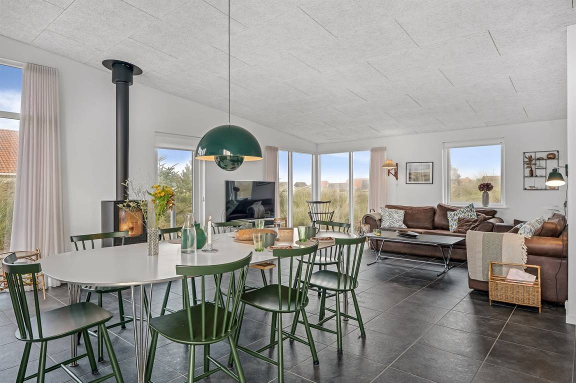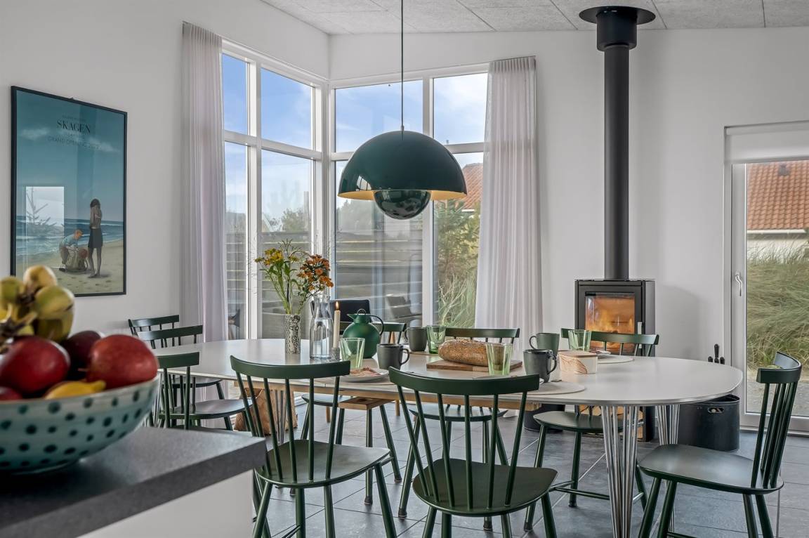 EinrichtungDas Ferienhaus eignet sich für 10 Personen. Die Ferienunterkunft hat eine Wohnfläche von 150 m² und wurde 2014 gebaut. Es ist erlaubt 2 Haustiere mitzubringen. Die Ferienunterkunft ist mit energiesparender Wärmepumpe ausgestattet. Fußbodenheizung in allen Räumen. Die Ferienunterkunft ist mit Waschmaschine ausgestattet. Wäschetrockner. Tiefkühlmöglichkeit mit 80 Liter Nutzinhalt. Es gibt außerdem einen Kaminofen. Für die jüngsten Feriengäste ist 1 Kinderhochstuhl vorhanden.