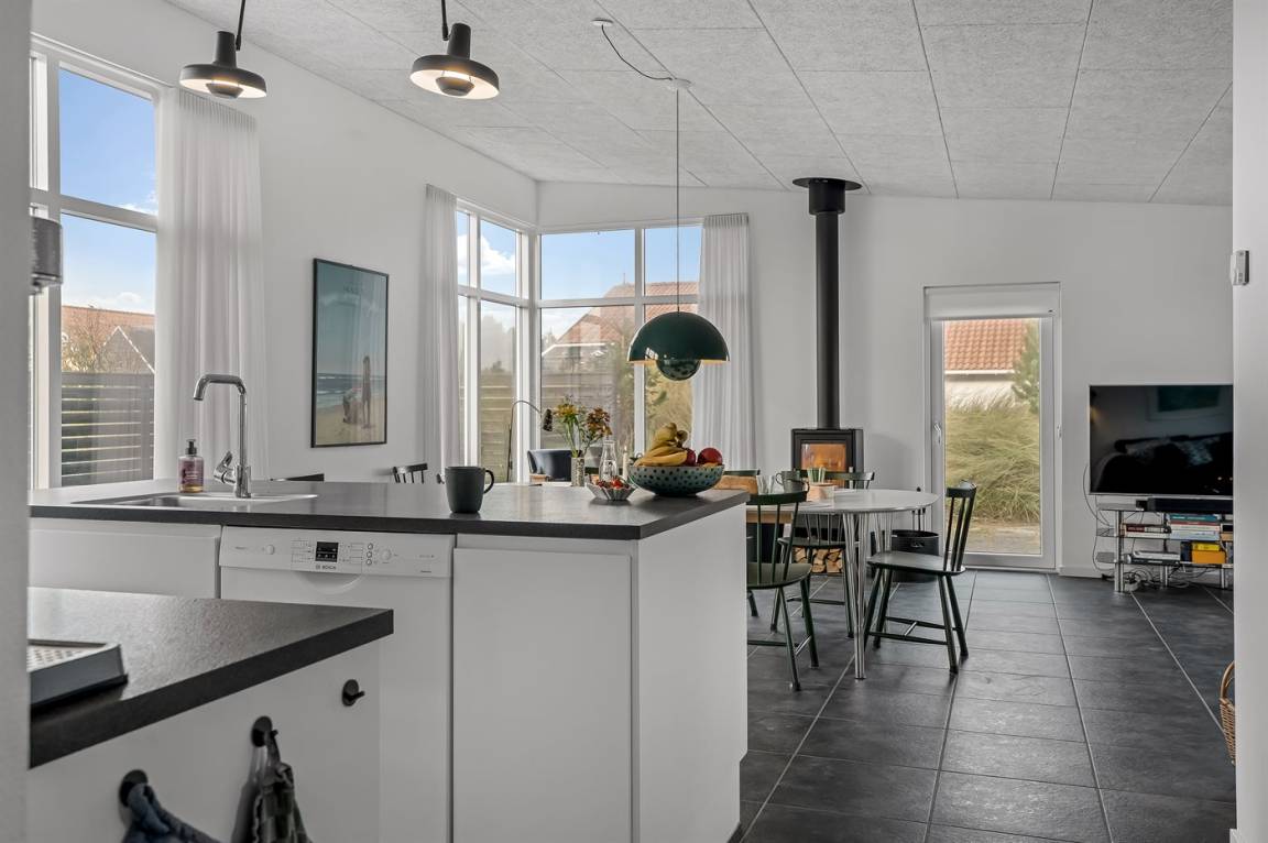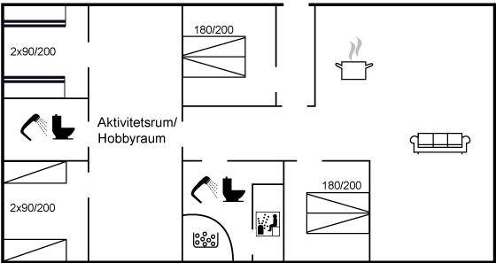 In den Dünen bei Åstien liegt dieses schöne, geräumige Ferienhaus mit einem Hobbyraum. Das Haus ist so gebaut, daß der Hobbyraum das Haupthaus und die Gäste- Kinderabteilung trennt.