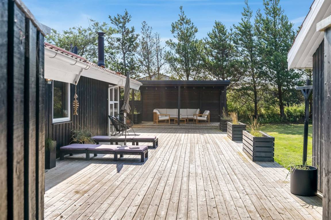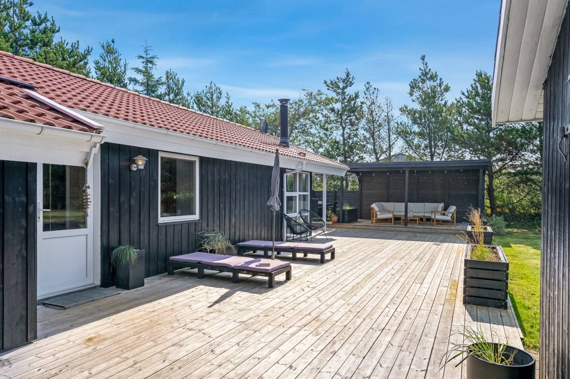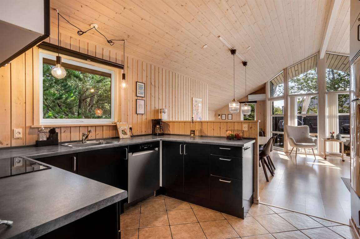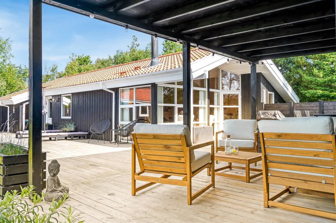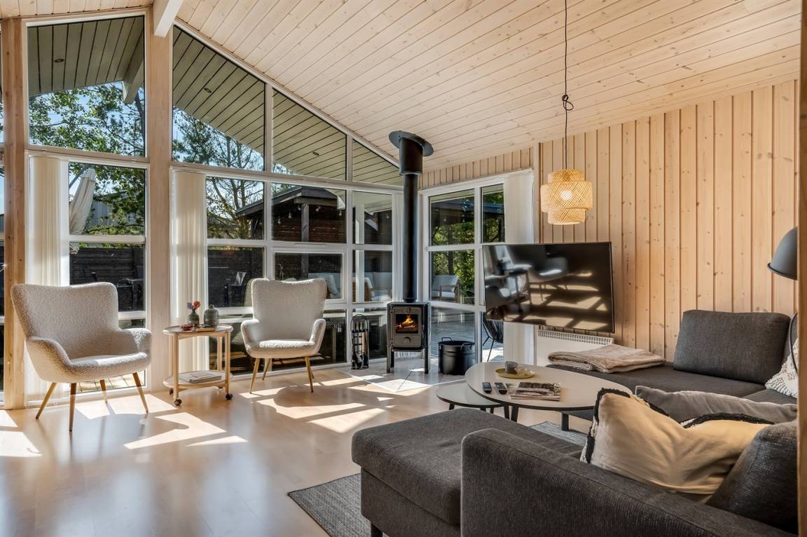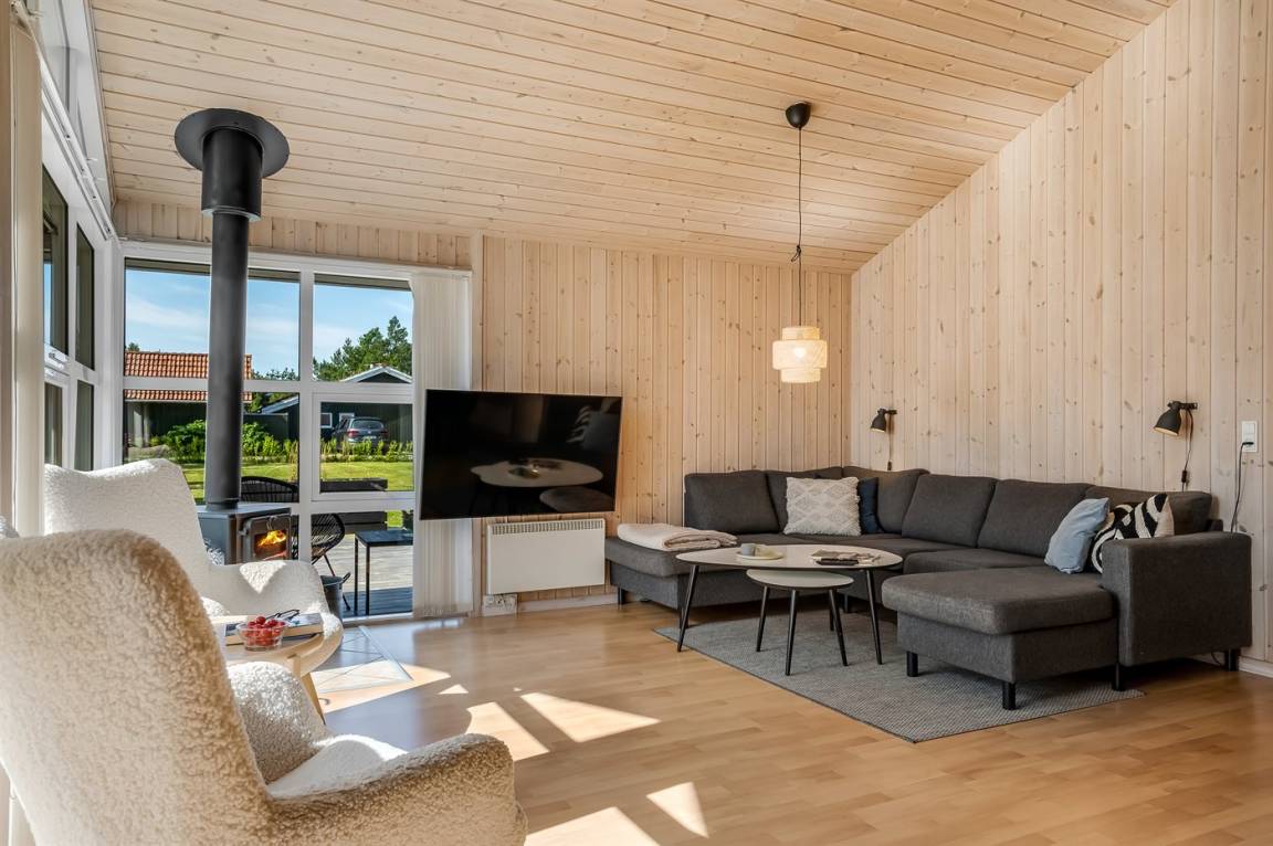 Gut geschützt von den Kiefern und Fichten an Kræn Tækkers Vej finden Sie dieses wohleingerichtete, helle und freundliche Ferienhaus.