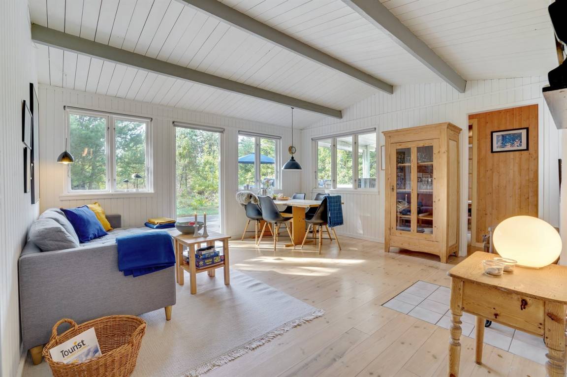 DraußenDie Ferienunterkunft liegt auf einem 1500 m² großen Naturgrundstück. Die Entfernung zum Meer beträgt 1000 m. Die Entfernung zum Fjord beträgt 18000 m. Die Entfernung zu einem See beträgt 4000 m. Die nächste Einkaufsmöglichkeit liegt 600 m entfernt. Es steht ein 50 m² Terrassenareal zur Verfügung. Außerdem gibt es 10 m² überdachte Terrasse. Geräteraum. Die Entfernung zu einem Spielplatz beträgt 600 m. Außendusche. Parkplatz auf dem Grundstück.