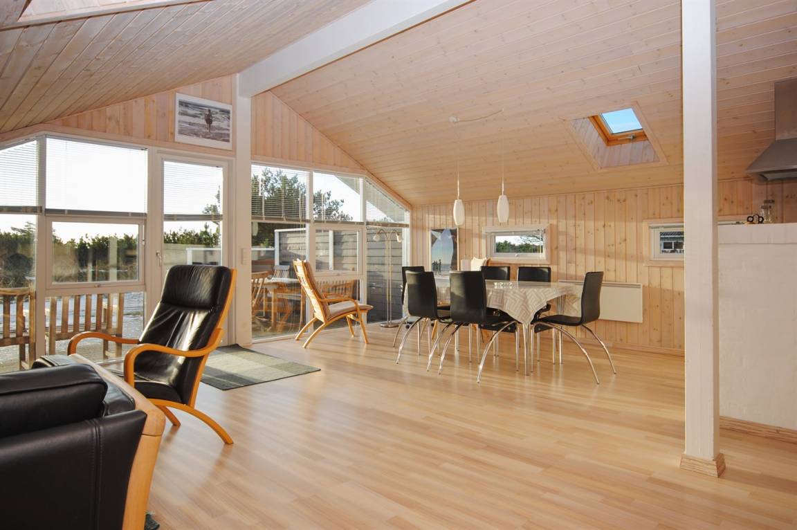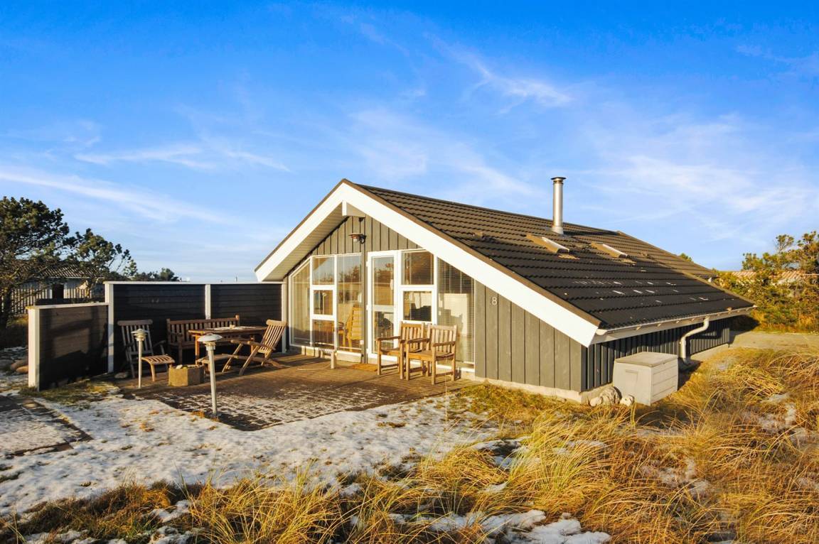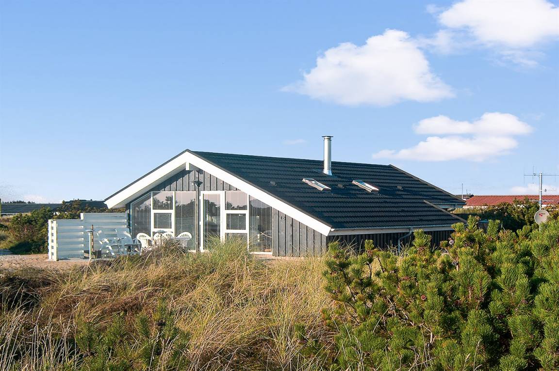 Sehr gemütliches Holzhaus mit Ziegeldach. Vom Haus hat man einen schönen Blick über die Landschaft auf die Nystrup Dünenpflanzung.