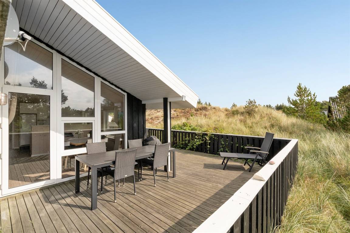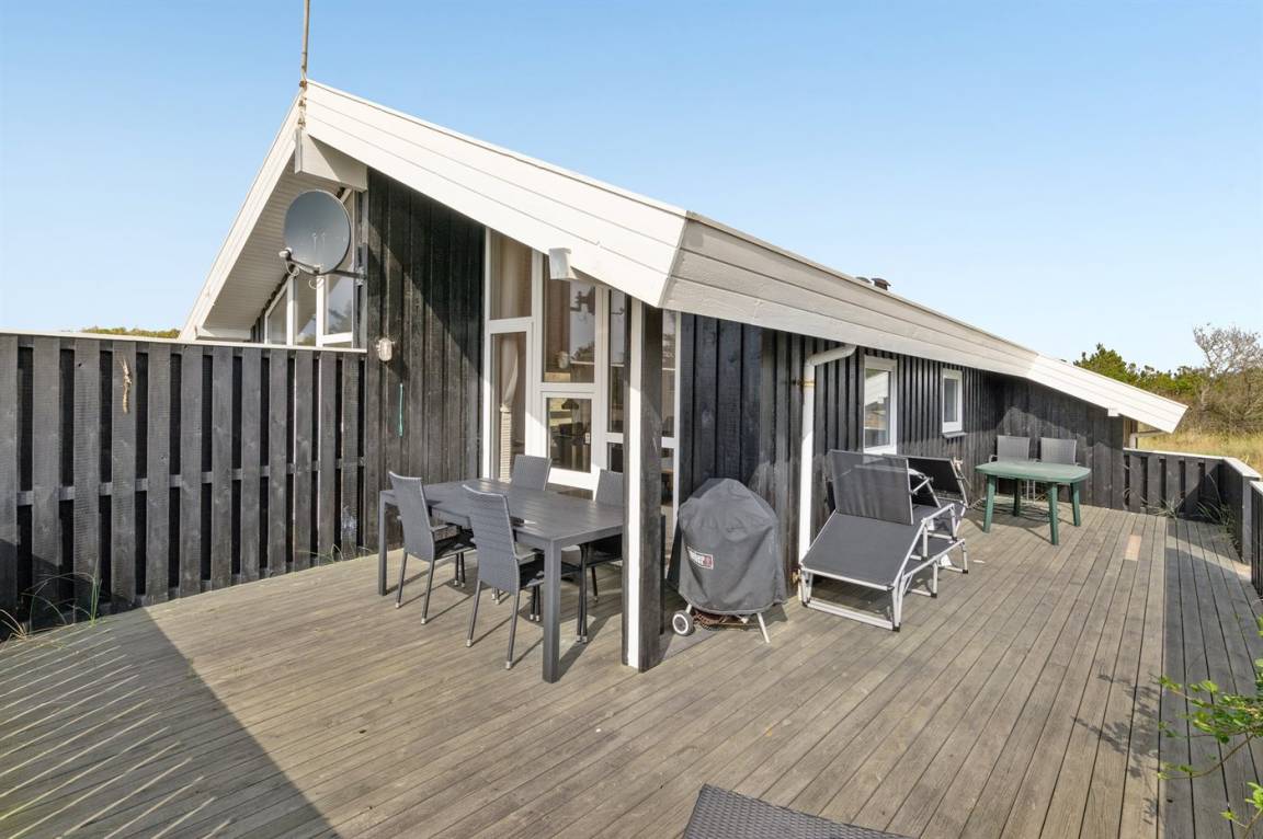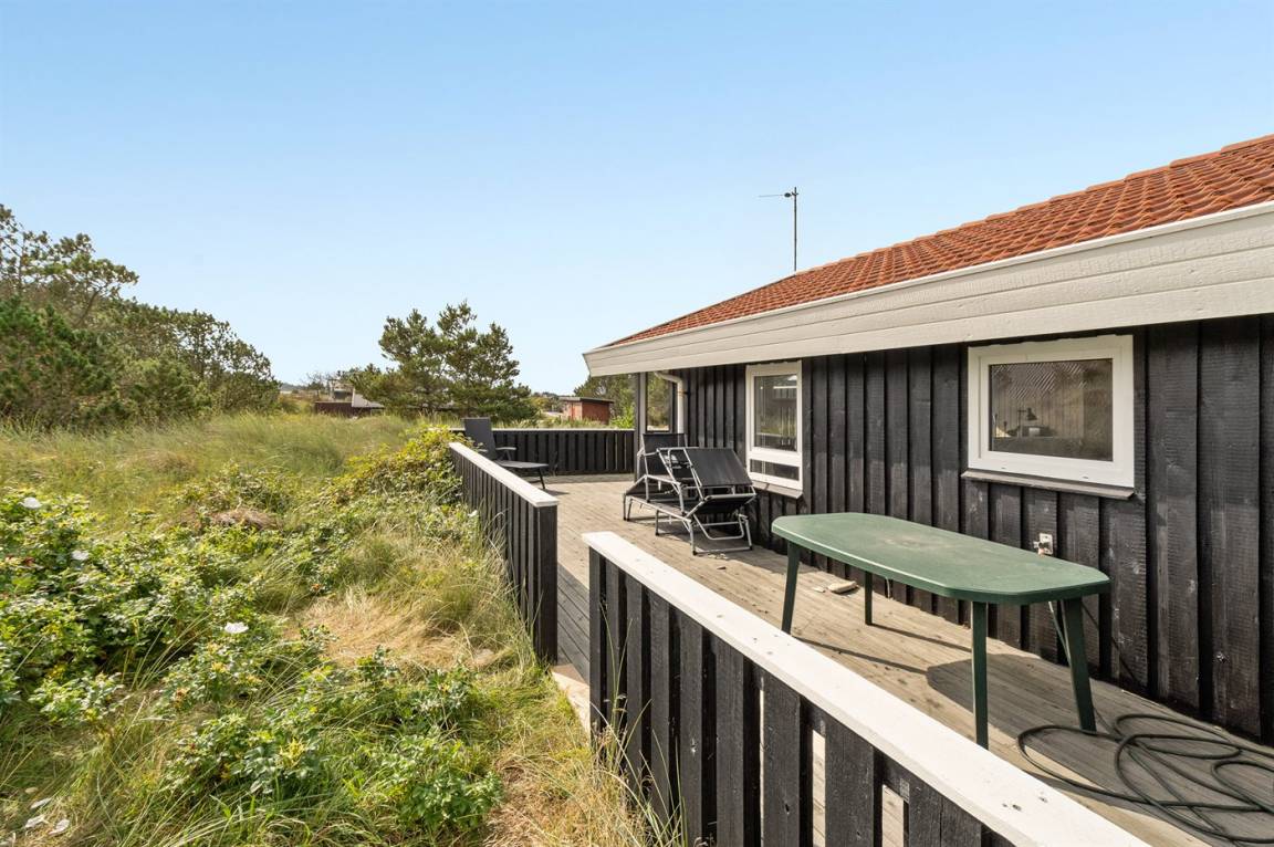DraußenDie Ferienunterkunft liegt auf einem 1745 m² großen Dünengrundstück. Die Entfernung zum Meer beträgt 500 m. Die nächste Einkaufsmöglichkeit liegt 800 m entfernt. Es steht ein 45 m² Terrassenareal zur Verfügung. Außerdem gibt es 5 m² überdachte Terrasse. Es steht ein Grill zur Verfügung. Parkplatz auf dem Grundstück.