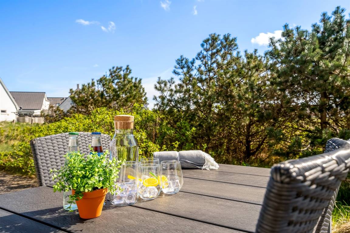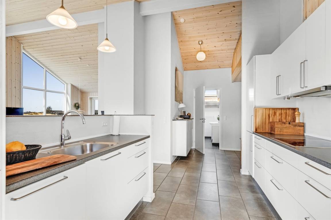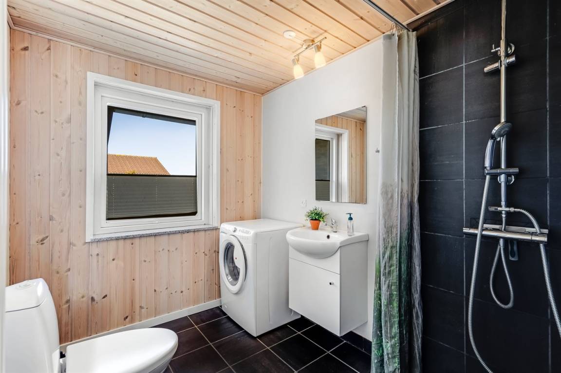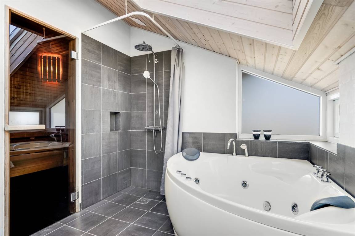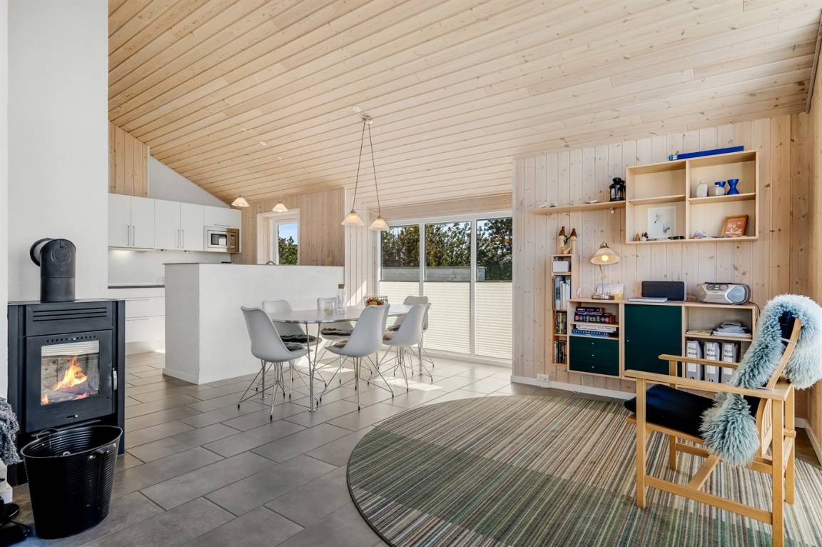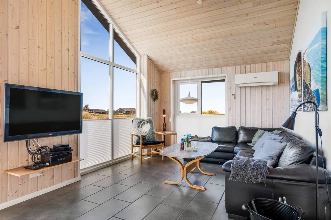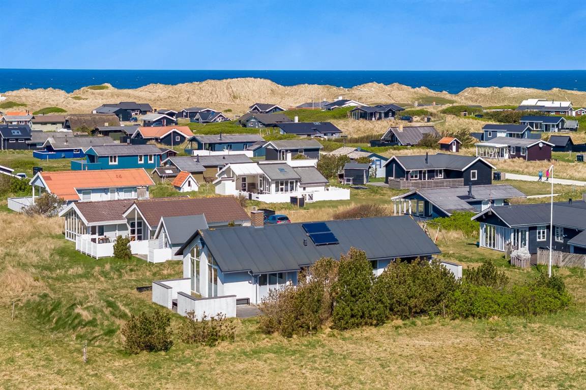 Am Ende einer der Seitenstrassen auf Kobbelsti, auf einem Grundstück das in südlicher Richtung an eine unbebaute Grünfläche angrenzt, liegt dieses schöne und geschmackvoll eingerichtete Ferienhaus aus Stein. Das Haus ist ganzjährig gedämmt und eignet sich daher auch für den Urlaub im Winterhalbjahr. Das Ferienhaus eignet sich für 6 Personen sowie 1 Kleinkind bis zu 3 Jahren. Das Ferienhaus hat eine Wohnfläche von 124 m² und wurde 2012 gebaut. Es stehen Waschmaschine und Wäschetrockner sowie ein Tiefkühlgerät mit einer Kapazität von 70 Liter zur Verfügung. Es sind Solarwärme sowie eine Luft-Luft-Wärmepumpe installiert und es ist ein Kaminofen vorhanden. Für die jüngsten Feriengäste gibt es Kinderhochstuhl, Kinderbett und Babybadewanne. Das Ferienhaus liegt auf einem 1200 m² großen Naturgrundstück. Die Entfernung zum Meer beträgt 300 m – es führt ein Pfad durch das Naturgebiet oder Sie können einen Kiesweg benutzen. Die nächste Einkaufsmöglichkeit liegt 900 m entfernt. Es steht eine 122 m² große, offene und vor dem Wind geschütze Terrasse mit Außenküche und Außendusche zur Verfügung. Außerdem gibt es eine 10 m² große, in Richtung Westen gelegene, überdachte Terrasse. Parkplatz auf dem Grundstück. Die Schlafplätze verteilen sich auf 3 Schlafzimmer; 2 mit Doppelbett und1 mit 2 Einzelbetten. Das Haus ist mit einem offenen Obergeschoss eingerichtet von dem aus Sie den Sternenhimmel betrachten können. Holzböden in 3 der Schlafzimmer. Die Küche ist mit u.a. Kühlschrank, 4 Induktionsmulden, Umluftofen, Mikrowelle sowie Geschirrspüler ausgestattet. Es gibt 2 Badezimmer, beide mit Fußbodenheizung, Dusche und Toilette. Es stehen Sauna und 2-Pers.-Whirlpool zur Verfügung – hier können Sie sich so richtig entspannen. An weiterer Ausstattung können Fernseher (mindestens 4 deutsche und 4 dänische Fernsehsender). DVD-Player, Radio, CD-Player und kabellose Internetverbindung erwähnt werden.