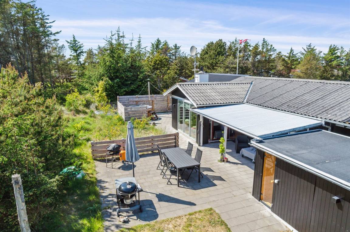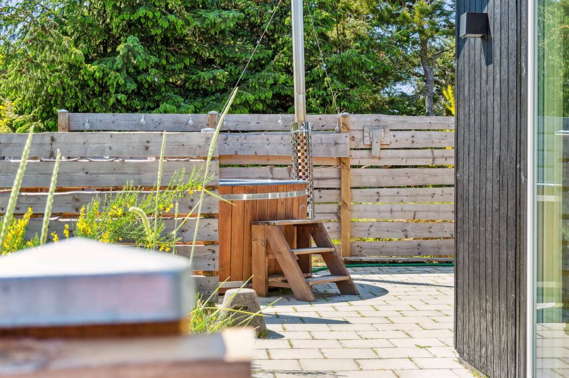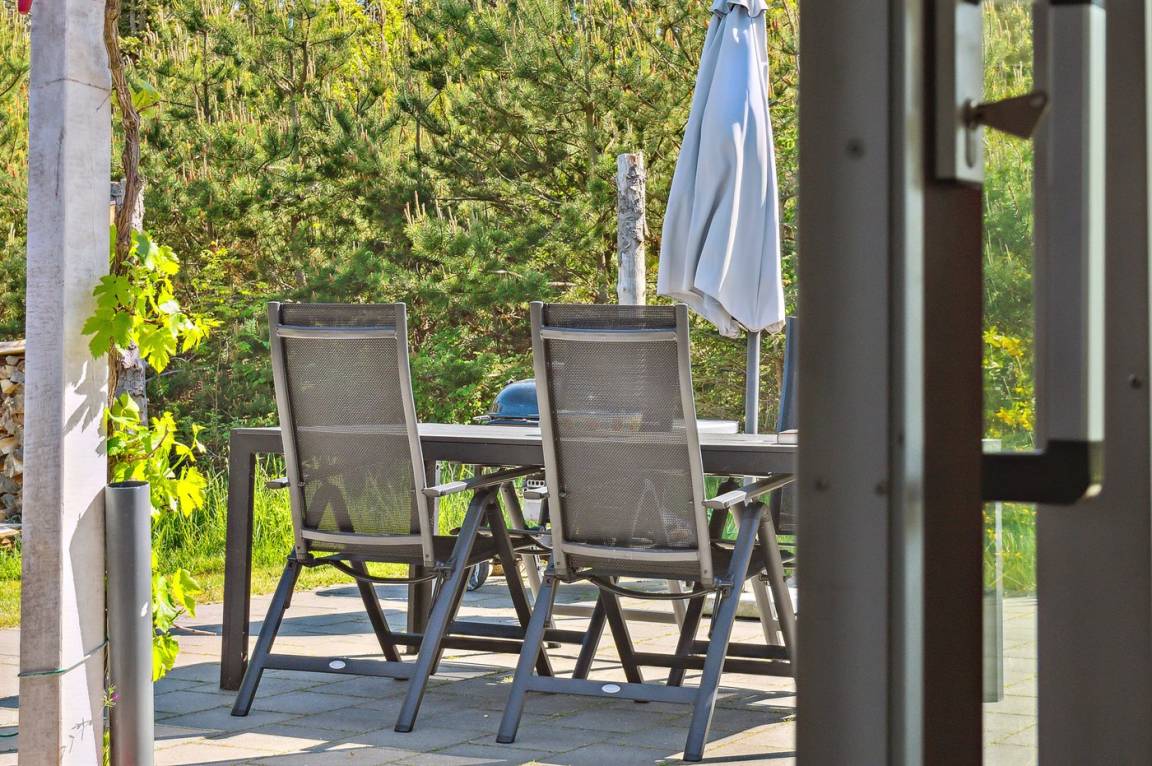 DraußenDie Ferienunterkunft liegt auf einem 1750 m² großen Naturgrundstück. Die Entfernung zum Meer beträgt 400 m. Die nächste Einkaufsmöglichkeit liegt 700 m entfernt. In einem Abstand von 5000 m gibt es einen Golfplatz. Es steht ein 100 m² Terrassenareal zur Verfügung. Außerdem gibt es 15 m² überdachte Terrasse. Es steht ein Grill zur Verfügung. Es ist ein Ladestecker für Elektroautos installiert. Parkplatz auf dem Grundstück.